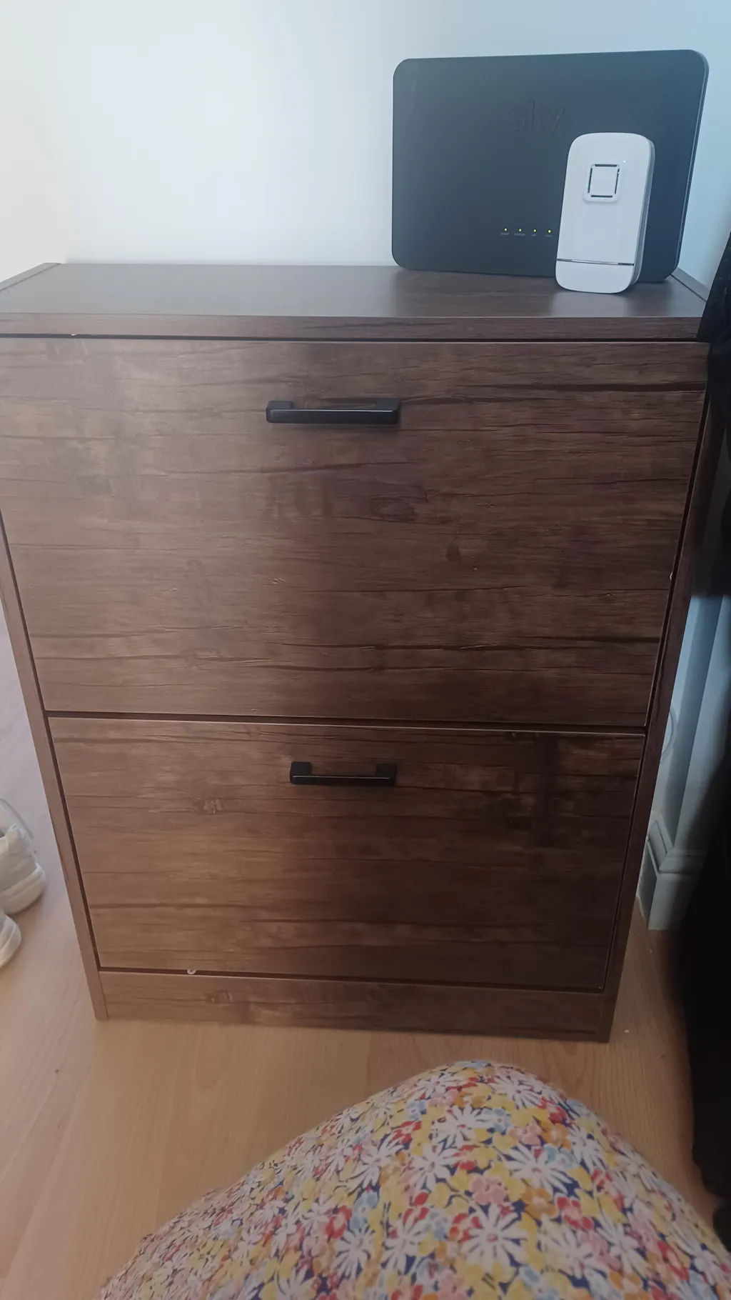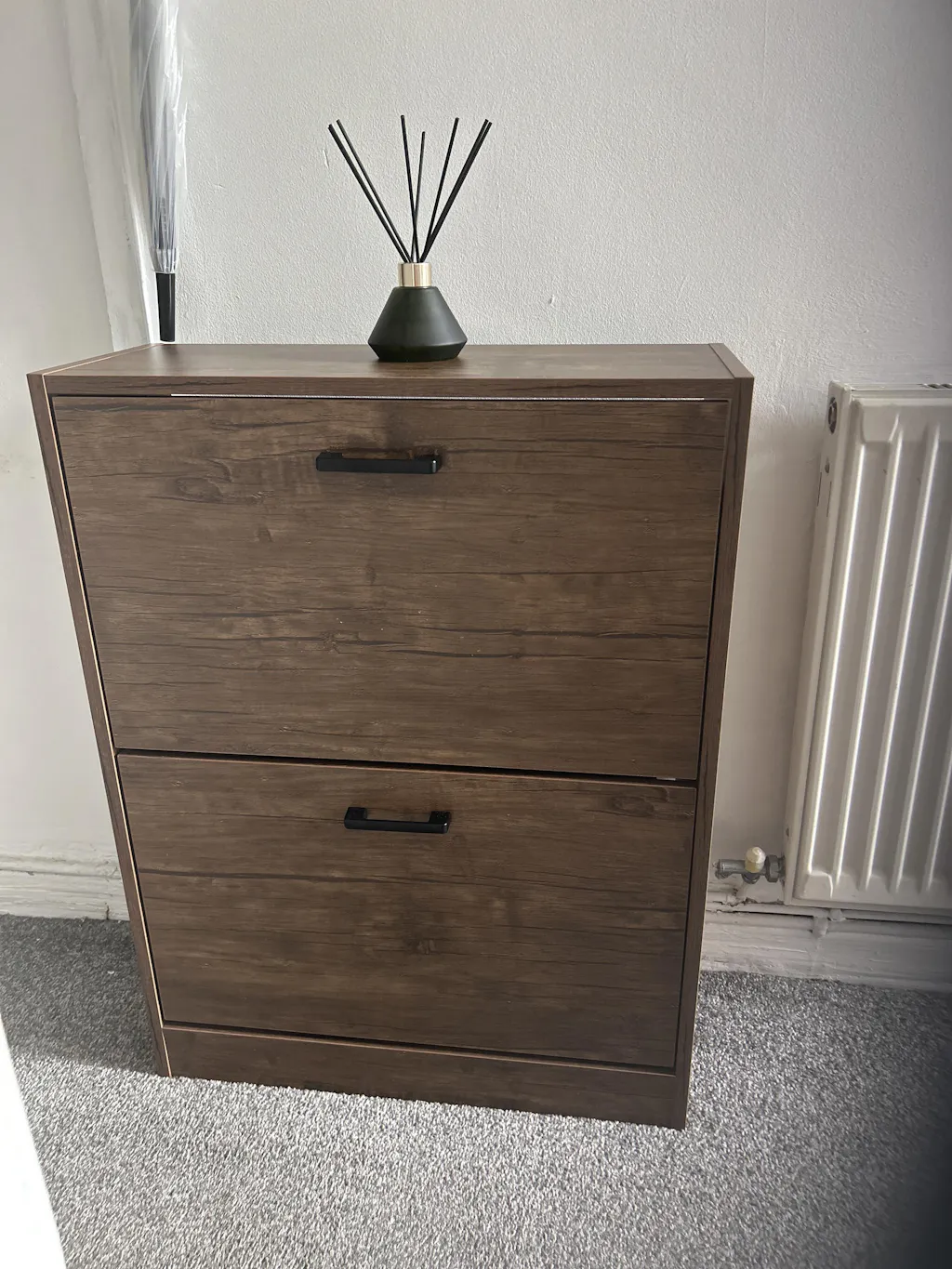 ![[Walnut] Hallway shoe storage unit in walnut with pull-down drawers open, showing two separator settings for taller shoes.](http://dreamhomestore.co.uk/cdn/shop/files/2-drawer-shoe-cabinet-sale.webp?v=1771012128&width=1214)