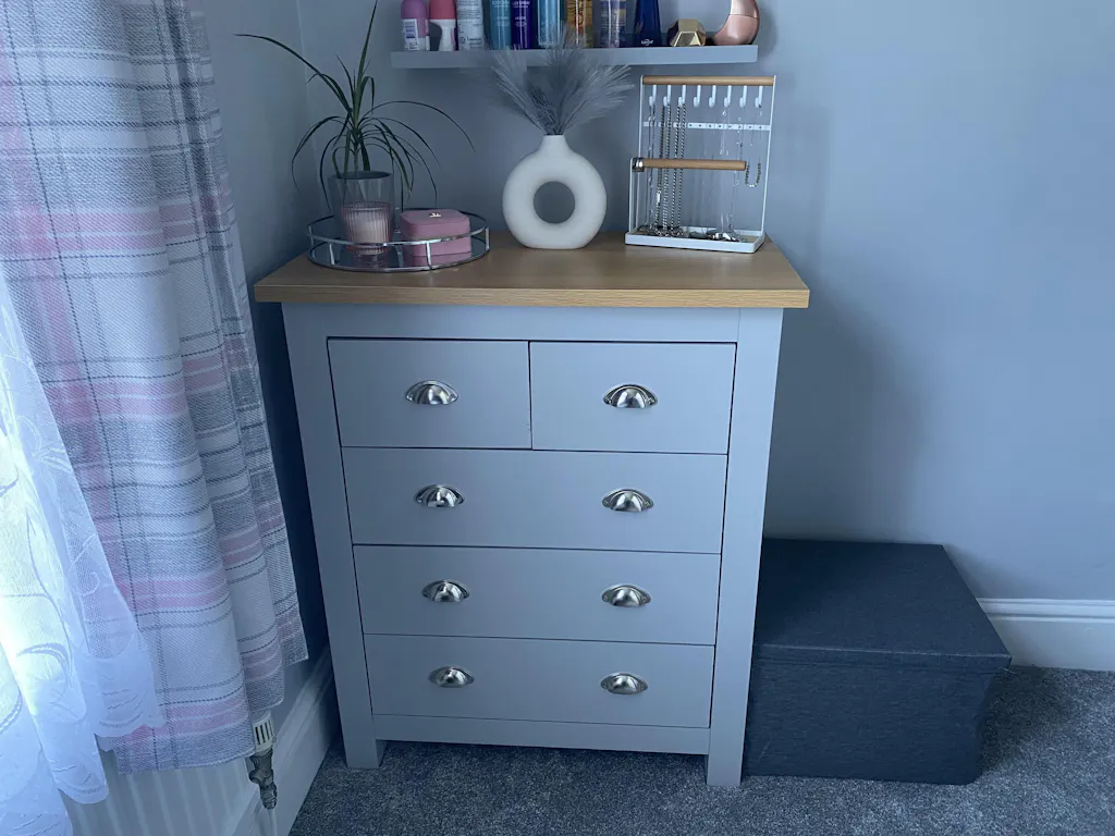![[Grey] shaker 5 drawer chest in bright room with window showing oak top and cup handles](http://dreamhomestore.co.uk/cdn/shop/files/grey-5-drawer-chest-of-drawers-lifestyle-view.webp?v=1774606985&width=1214)