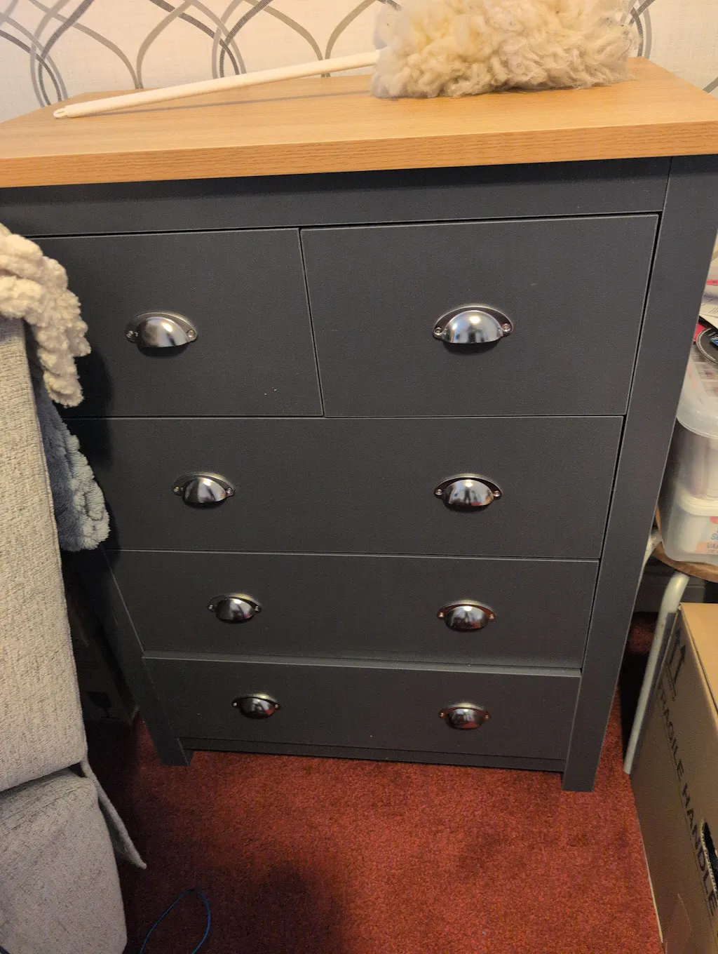 ![[Grey] shaker chest overhead view with cup handle drawers open on oak effect top surface](http://dreamhomestore.co.uk/cdn/shop/files/grey-5-drawer-chest-of-drawers-drawers-open.webp?v=1774607120&width=1214)