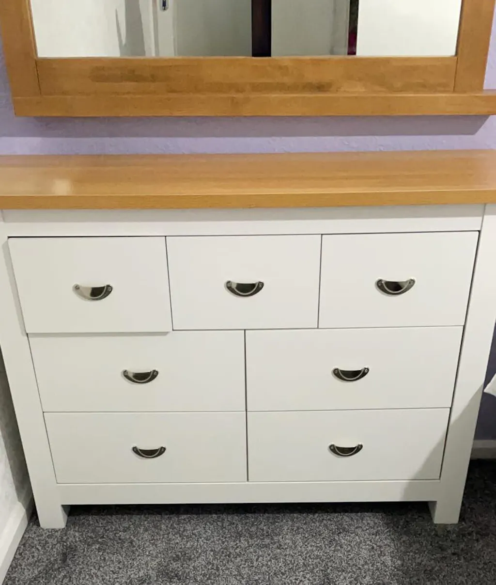 ![[White] Shaker 7 drawer wide chest with oak top cup handles and abstract art on textured wall.](http://dreamhomestore.co.uk/cdn/shop/files/white-shaker-7-drawer-wide-chest-of-drawers.webp?v=1774606494&width=1214)