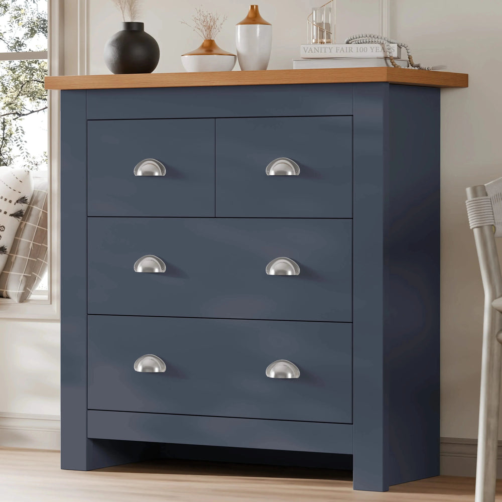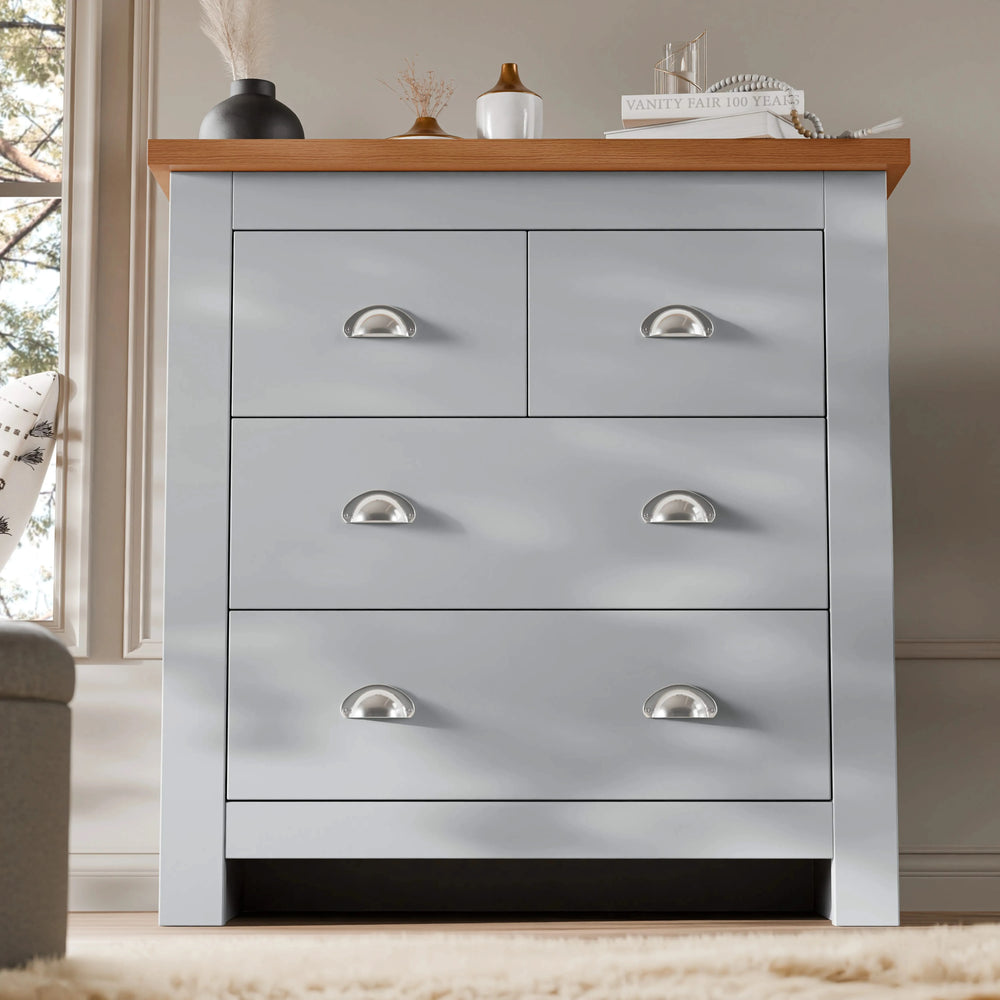 ![[Grey] 2 over 2 Chest of Drawers Bedroom | Chester Drawers in light grey with oak top, featuring 4 spacious drawers and silver cup handles for modern storage.](http://dreamhomestore.co.uk/cdn/shop/files/shaker-grey-4-chest-of-drawers.webp?v=1772540249&width=1214)