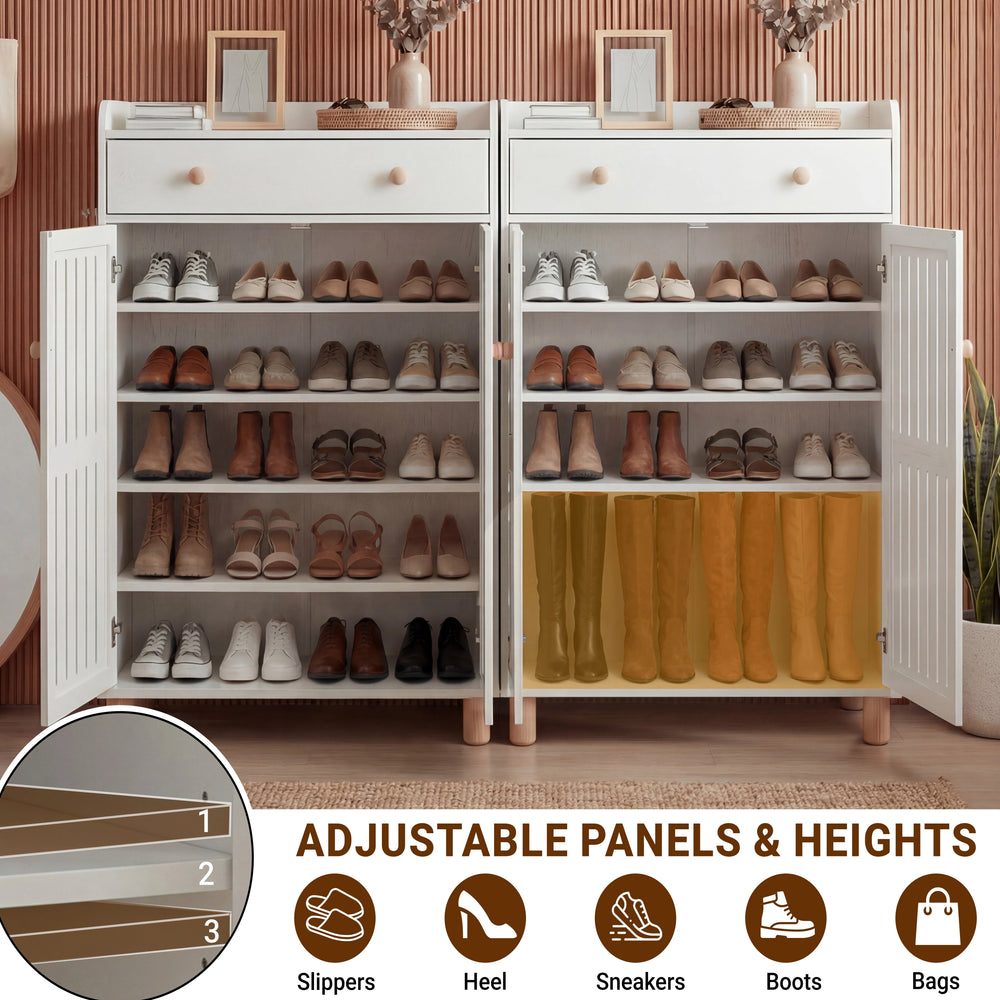 ![[White] Front view of slatted shoe cabinet with both louvered doors closed and top drawer with wooden knobs](http://dreamhomestore.co.uk/cdn/shop/files/5-tier-shoe-cabinet-white-doors-closed-front-view.webp?v=1774863975&width=1214)