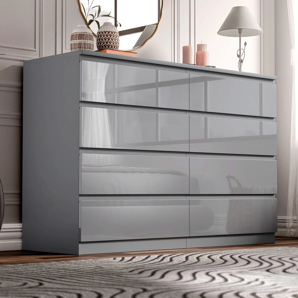 High Gloss Wide 8 Drawer Chest of Drawers - Bedroom Dresser