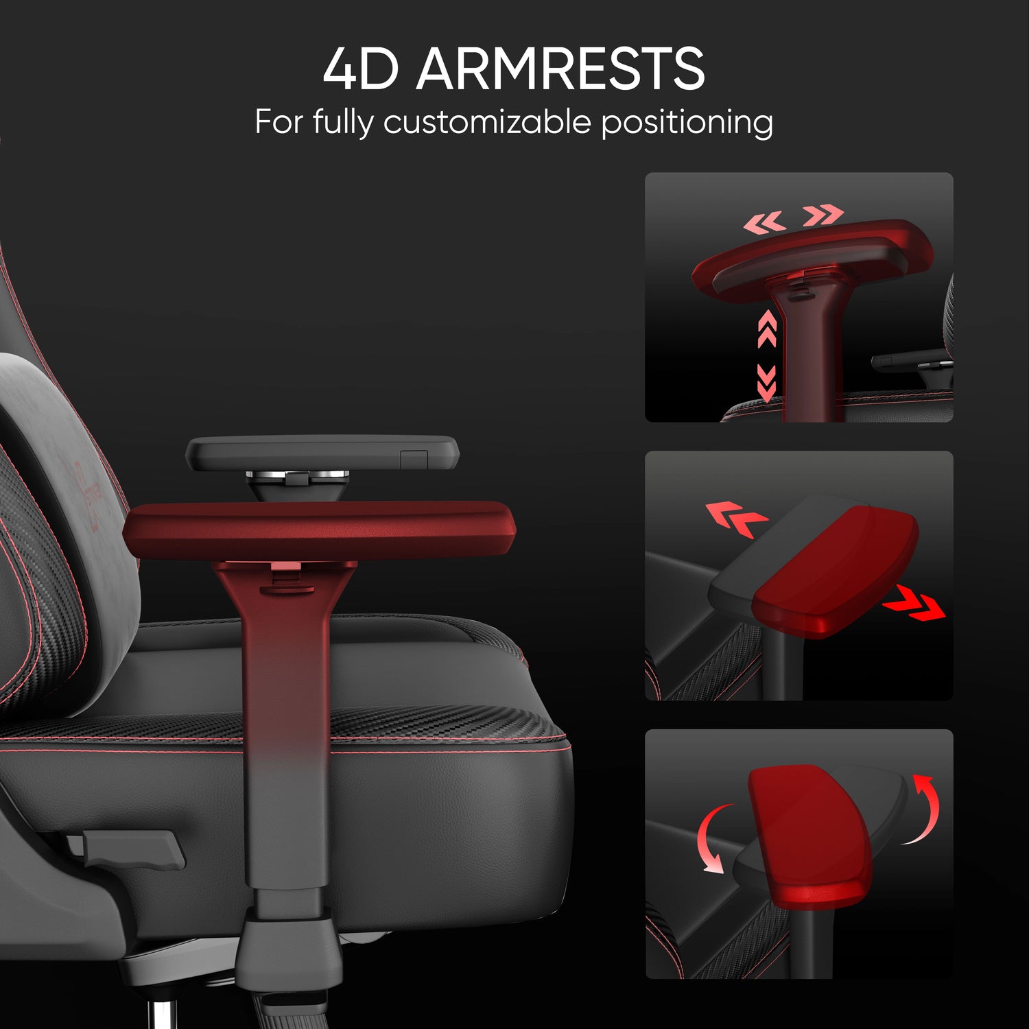 4D Adjustable Armrest Ease: The ergonomic gaming chair has armrests that can be adjusted in any direction for natural support, reducing tension and fatigue.