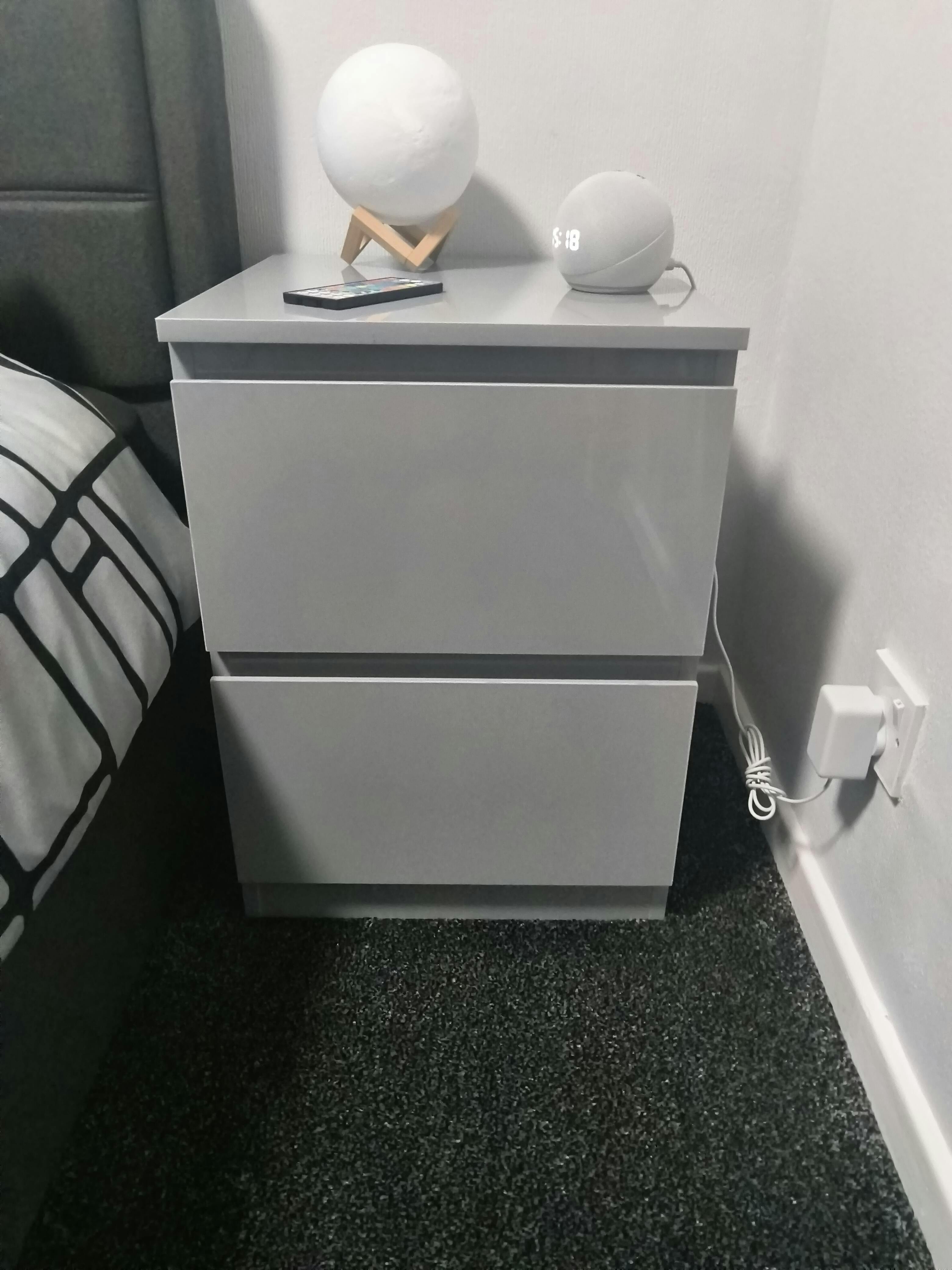 Durable Gloss Finish: This two-drawer bedside table comes with a high gloss finish that adds lasting shine and modern style to most bedrooms.