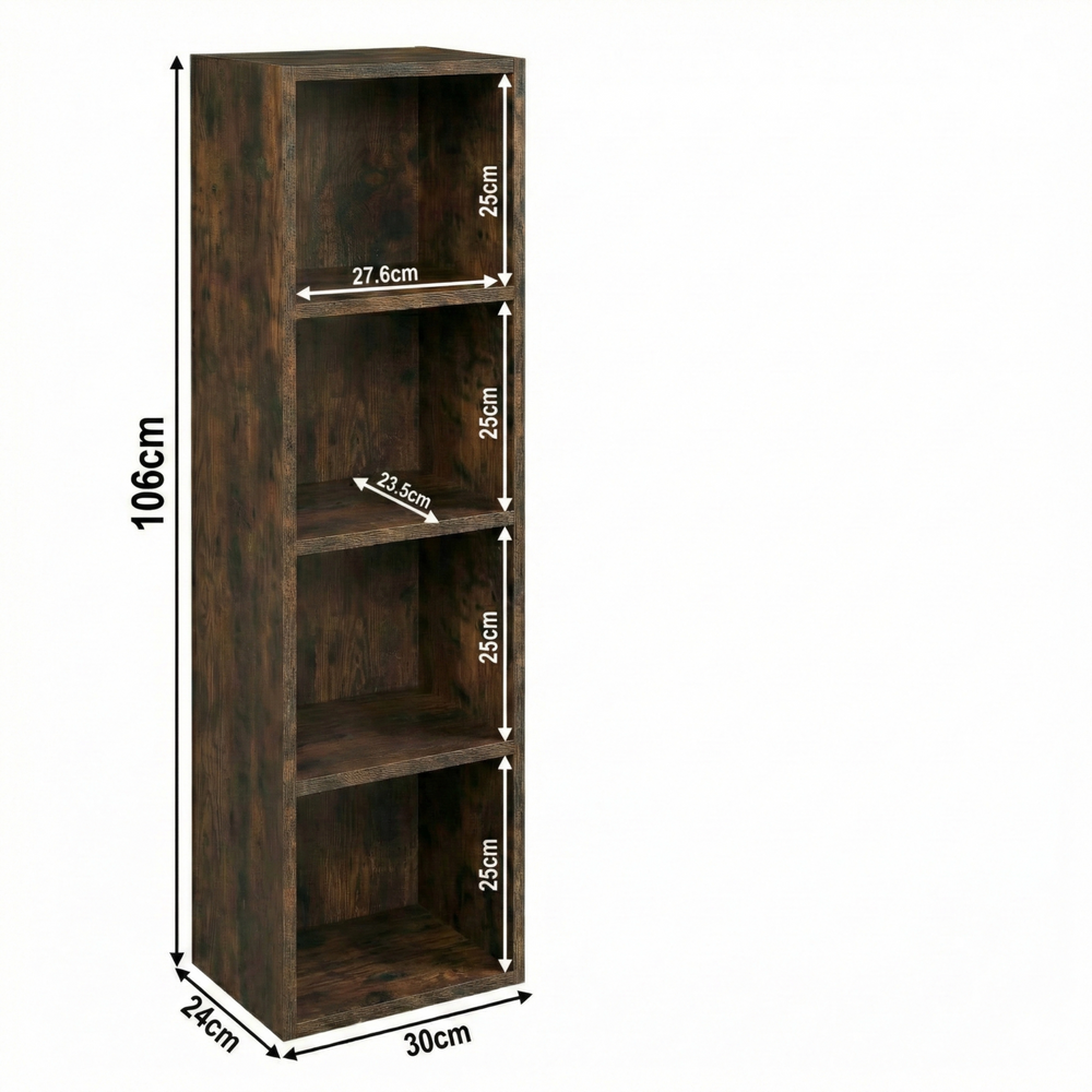 ![[4 Shelf | Black] 4 tier black narrow bookshelf dimensions height 106cm and width 30cm. Shelf dimensions: height 25cm and depth 23.5cm](http://dreamhomestore.co.uk/cdn/shop/files/black-4-tier-bookcase-cube-storage-unit-size.webp?v=1750685450&width=1214)