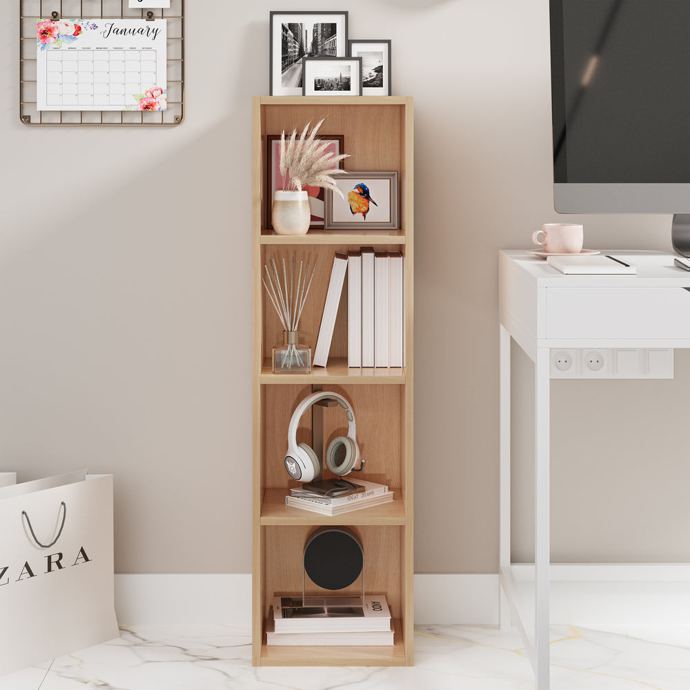 ![[4 Shelf | Beech] front view of beech slim bookcase neatly holding books and ornaments for small spaces](http://dreamhomestore.co.uk/cdn/shop/files/beech-4-tier-bookcase-cube-storage-unit-1.webp?v=1750686277&width=1214)