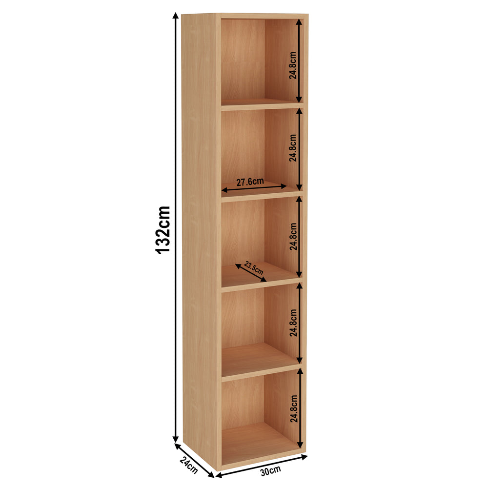 ![[5 Shelf | Beech] measurement of 5 tier beech narrow bookshelf, height 132cm and width 30cm. Shelf dimensions: height 25cm and depth 23.5cm](http://dreamhomestore.co.uk/cdn/shop/files/beech-5-tier-bookcase-cube-storage-unit-size.webp?v=1775116173&width=1214)