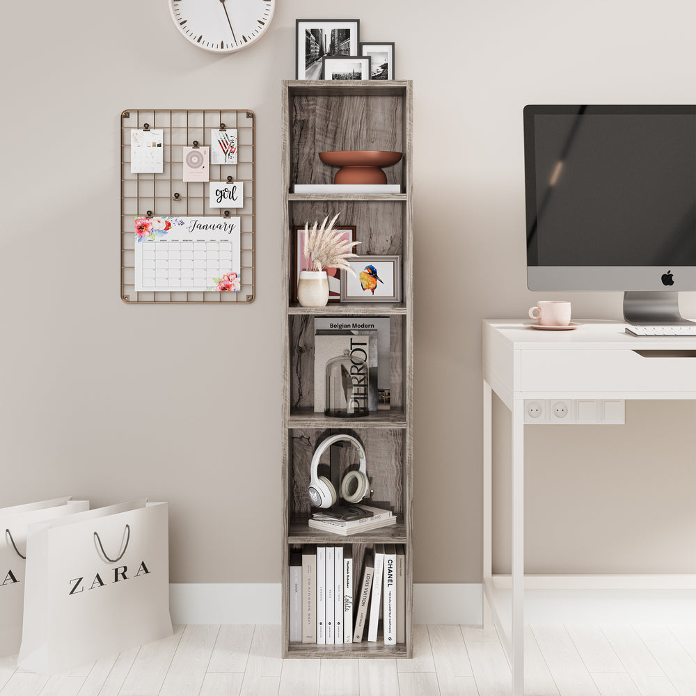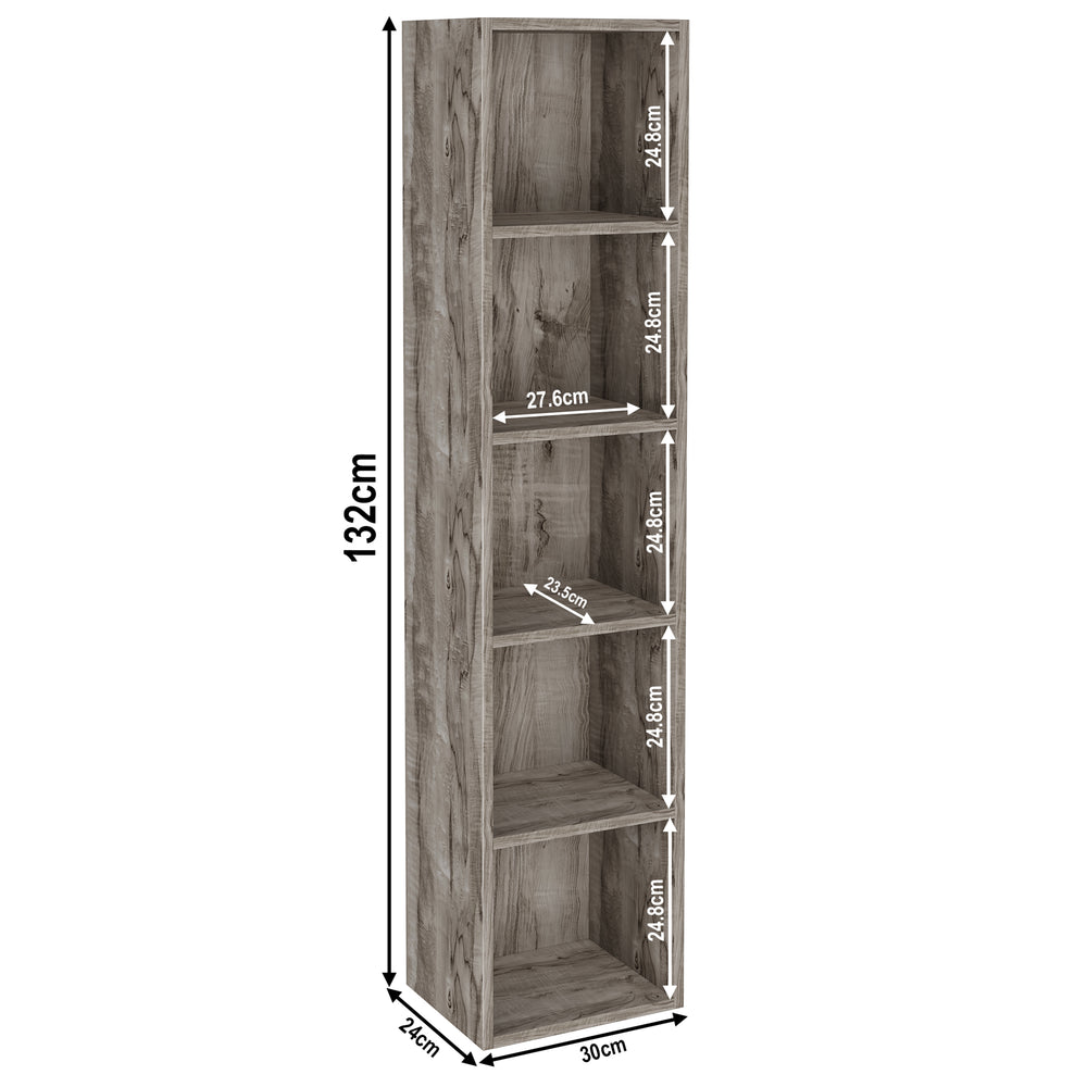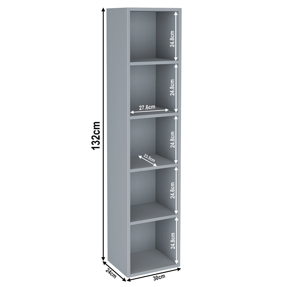 ![[5 Shelf | Grey] 5 tier grey tall slim bookcase with height 132cm and width 30cm. Shelf height 25cm and depth 23.5cm](http://dreamhomestore.co.uk/cdn/shop/files/grey-5-tier-bookcase-cube-storage-unit-size.webp?v=1775116173&width=1214)