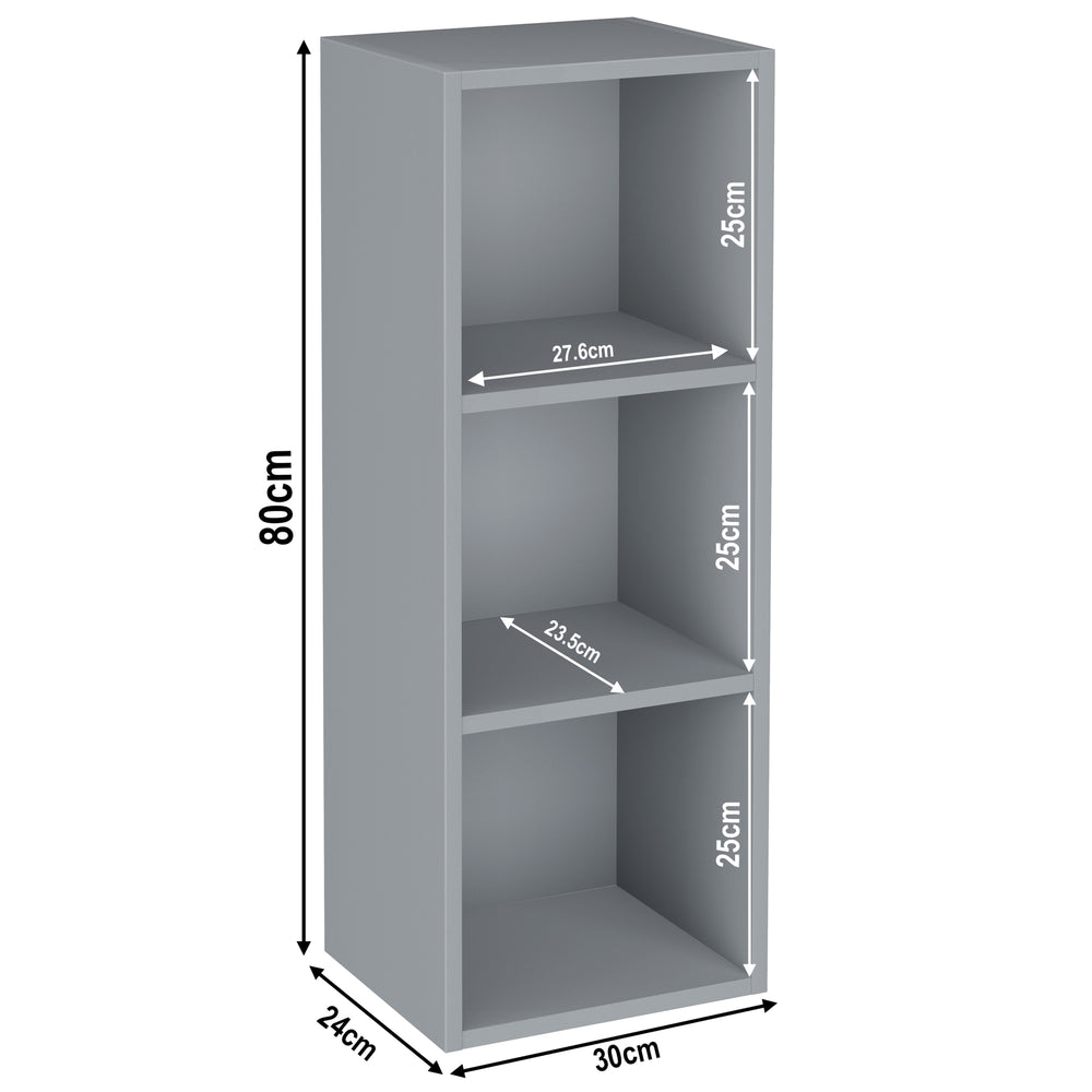 ![[3 Shelf | Grey] measurement of 3 tier grey slimline bookcases, height 80cm and width 30cm. Shelf dimensions: height 25cm and depth 23.5cm](http://dreamhomestore.co.uk/cdn/shop/files/grey-3-tier-bookcase-cube-storage-unit-size.webp?v=1750684476&width=1214)