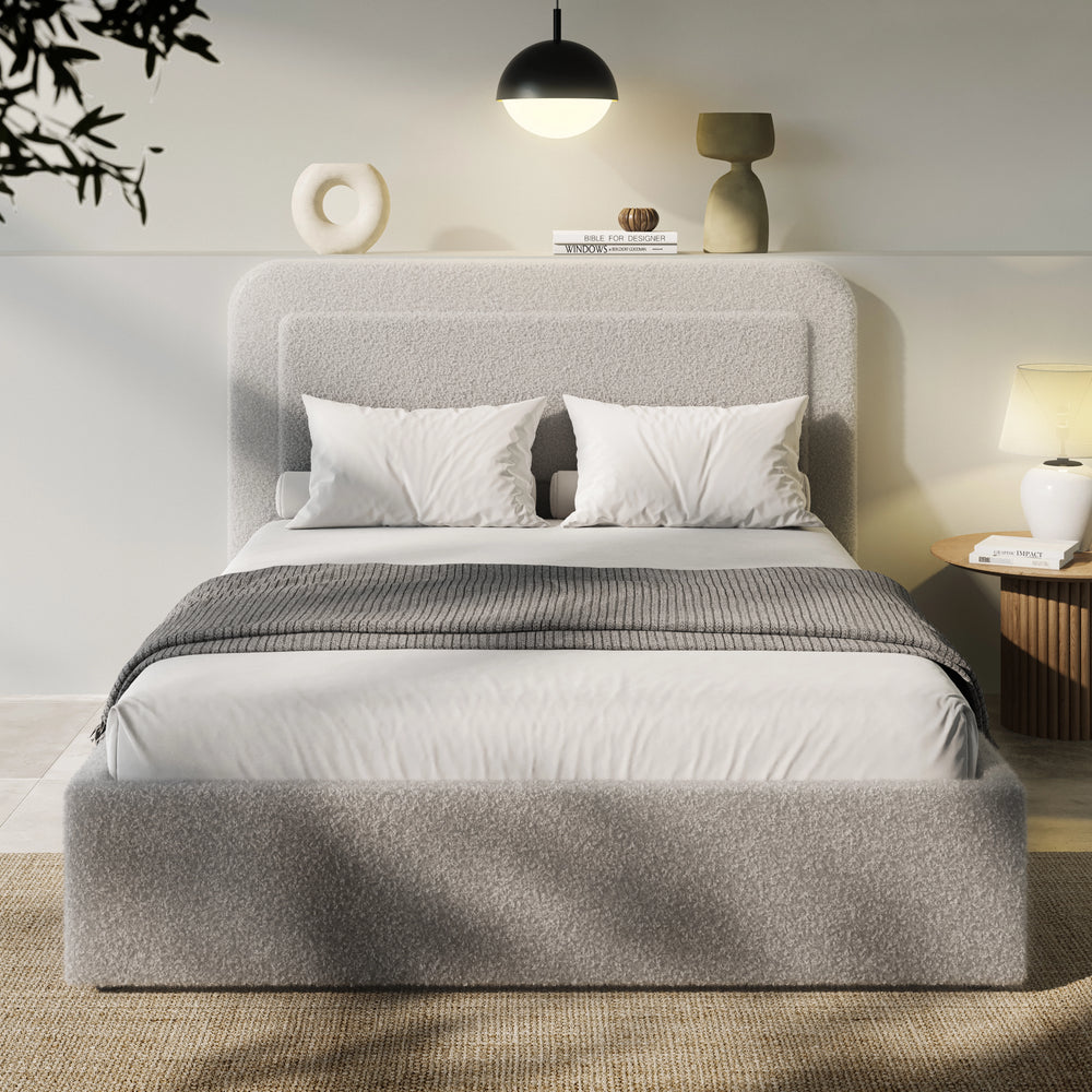 ![[Double | Grey] Boucle upholstered ottoman storage bed with curved headboard in light grey, featuring gas-lift storage and modern platform design for stylish bedrooms.](http://dreamhomestore.co.uk/cdn/shop/files/boucle-double-ottoman-bed.webp?v=1763387211&width=1214)