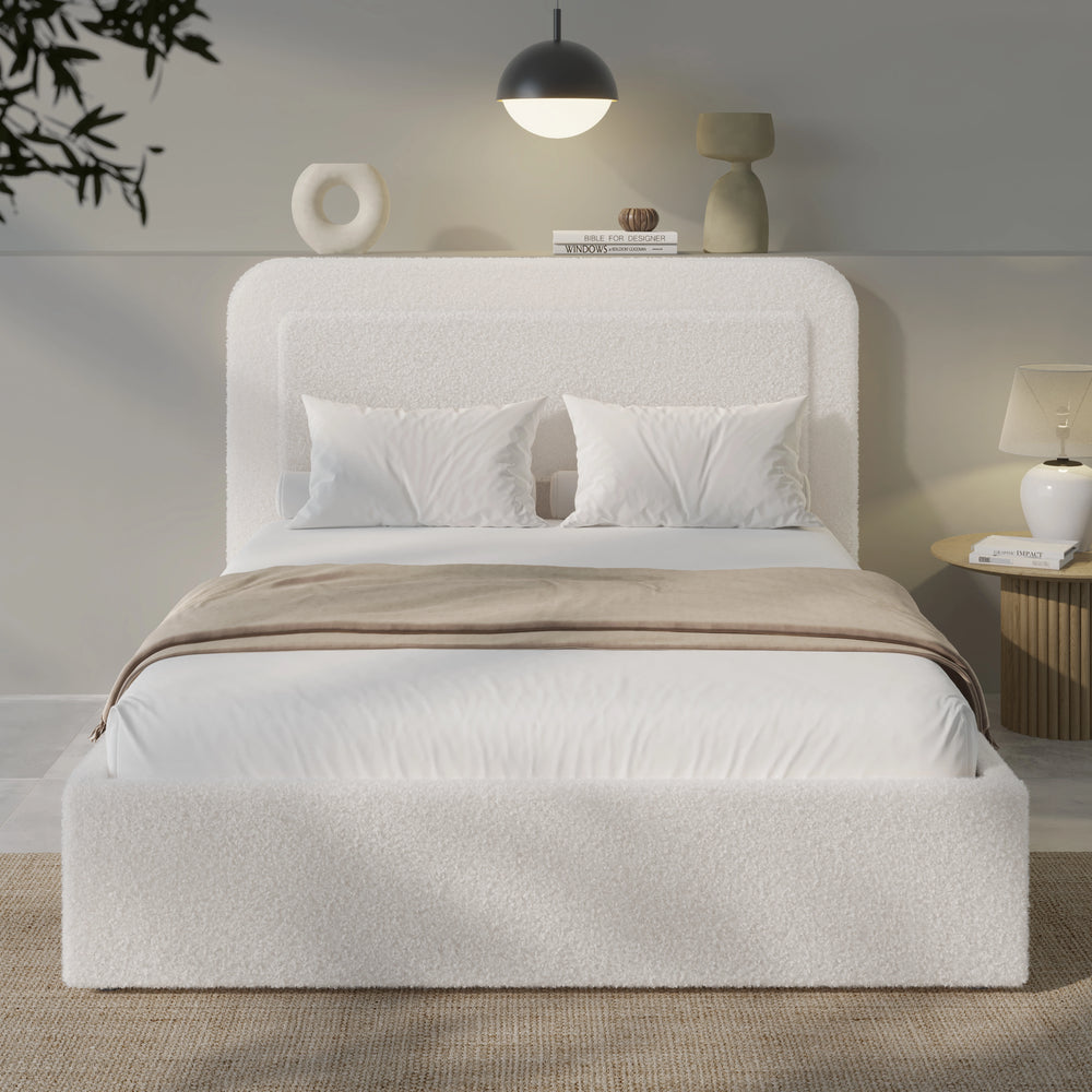 Boucle Upholstered Ottoman Storage Bed with Curved Headboard