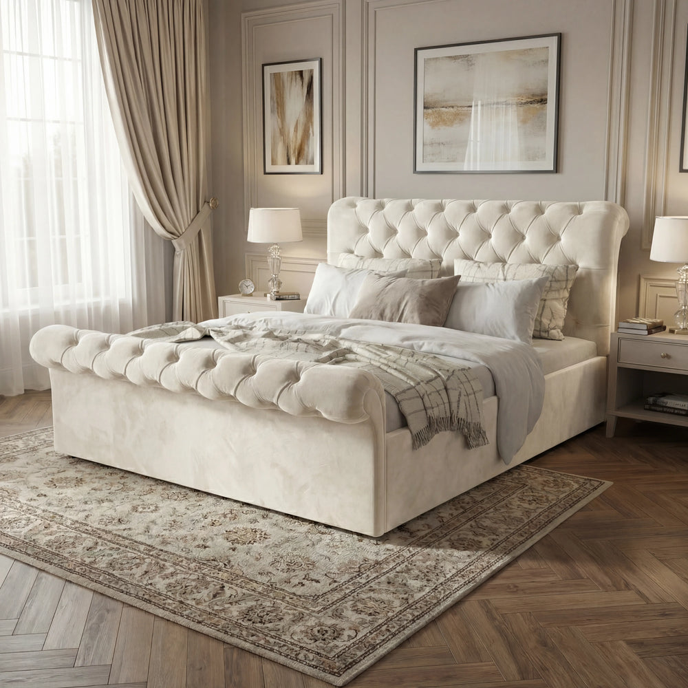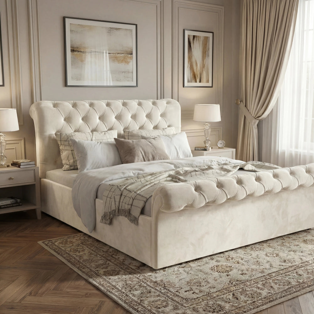 ![[Double | Beige] Close-up shot of beige tufted headboard, emphasizing the soft, luxurious and velvet diamond stitching](http://dreamhomestore.co.uk/cdn/shop/files/beige-chesterfield-double-bed-tufted-headboard-detail.webp?v=1771855944&width=1214)