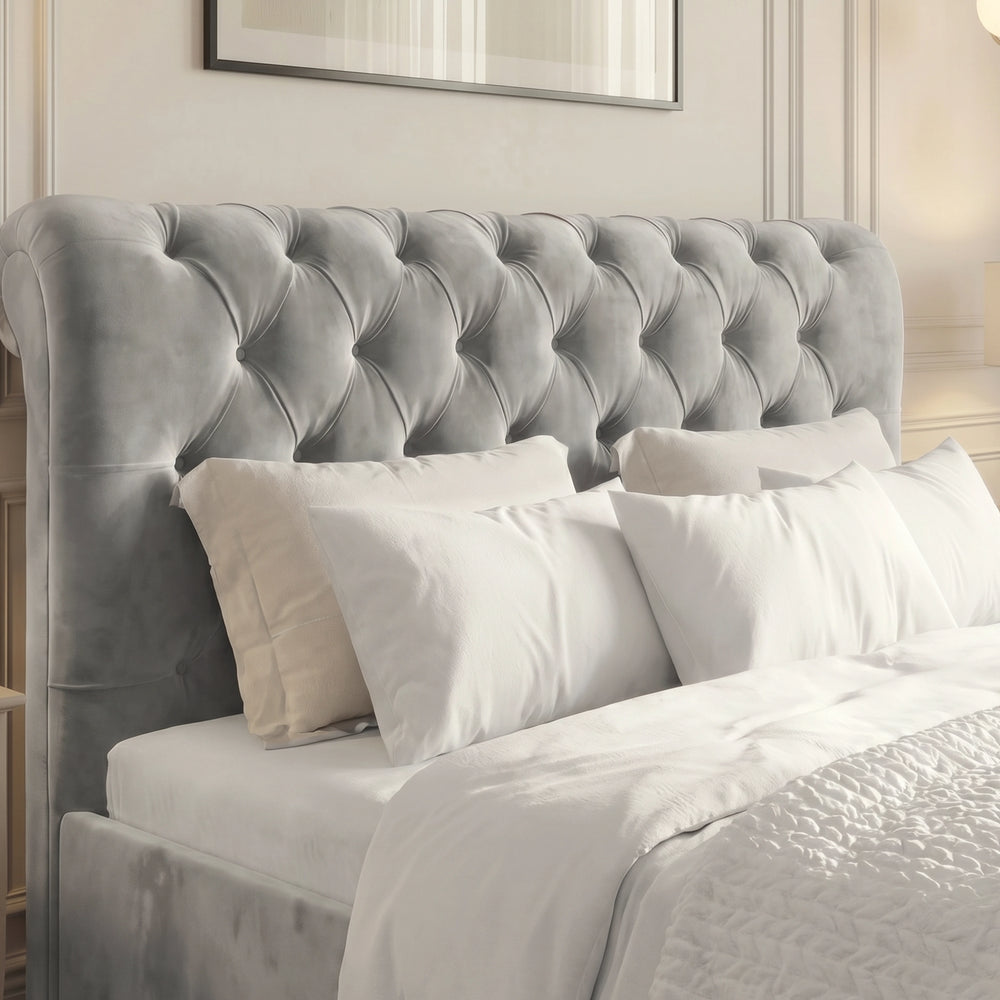 ![[Small Double | Grey] Tight headboard Chesterfield ottoman bed showing grey velvet button tufting and scroll edge](http://dreamhomestore.co.uk/cdn/shop/files/chesterfield-ottoman-bed-sd-grey-headboard-macro.webp?v=1777456715&width=1214)