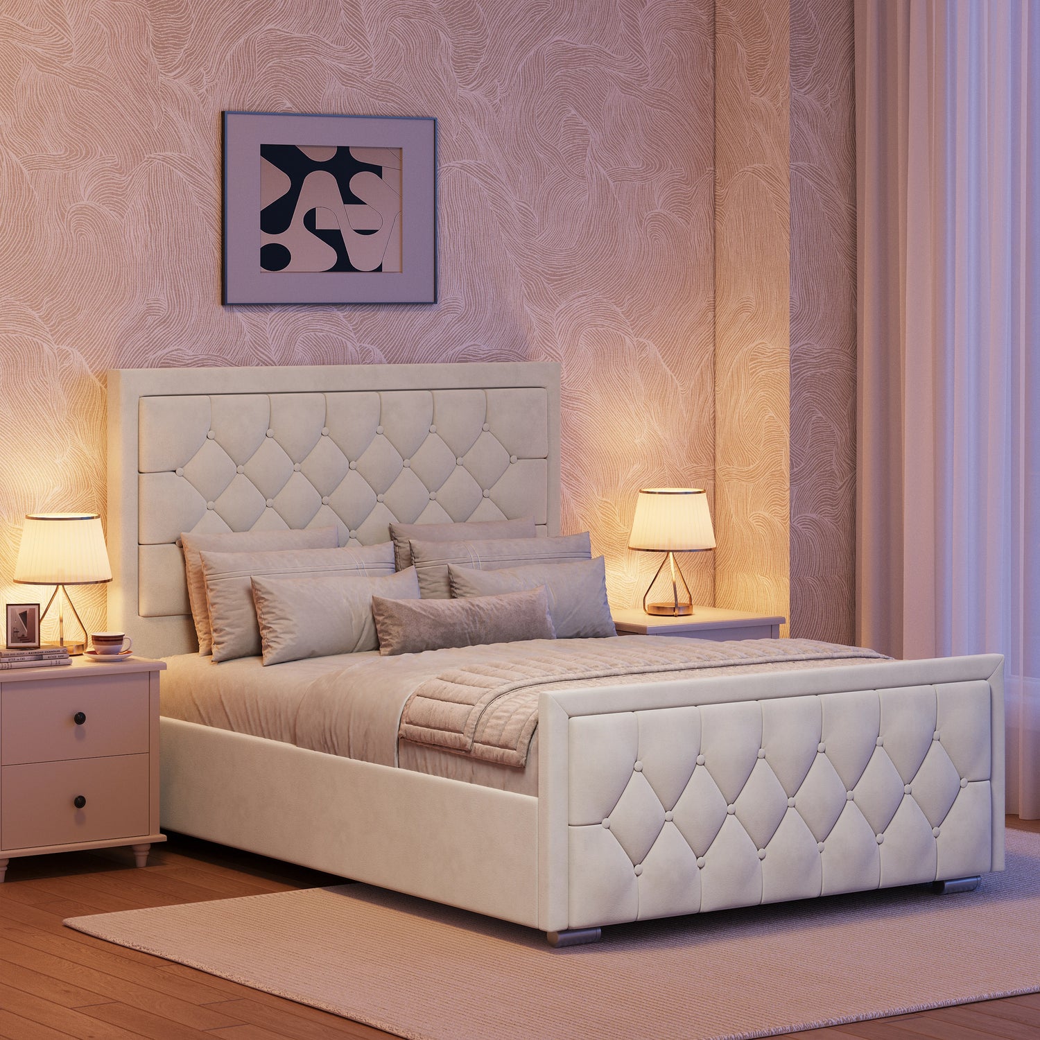 Raised Footboard Style: The ottoman bed frame's footboard stands taller with a matching puffed diamond pattern, giving the bed a beautifully unified look.