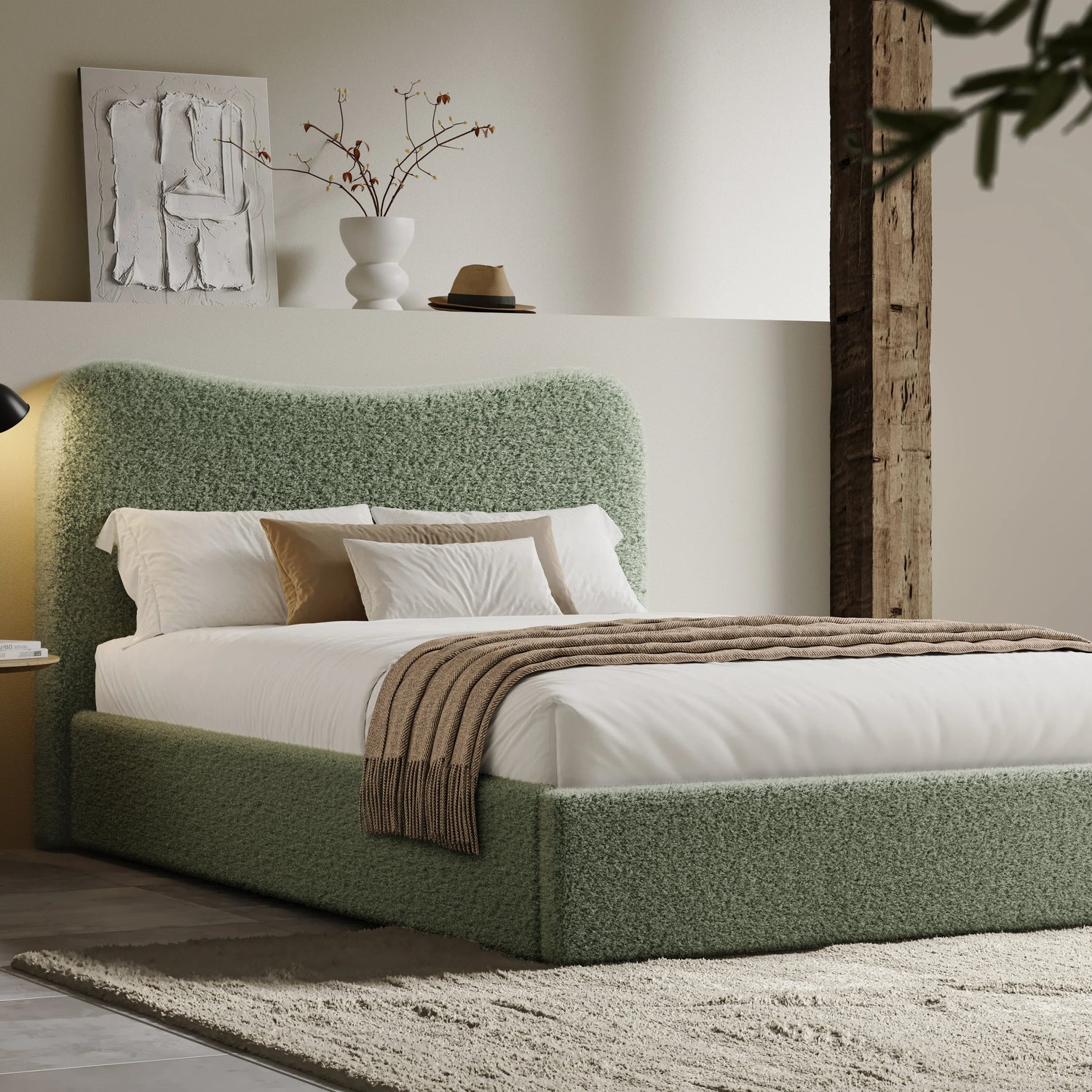 Instantly becoming a refined focal point, the curved Ottoman bed brings a modern clarity to your space. The 105 cm arched headboard creates a supportive curve, while the teddy fabric upholstery softens the rooms with its warmth. Built from quality engineered wood with reinforced metal support, this bed also helps you turn an unused room into generous storage space. Available in three colours and in both king and double bed sizes, you can choose one that matches your taste.