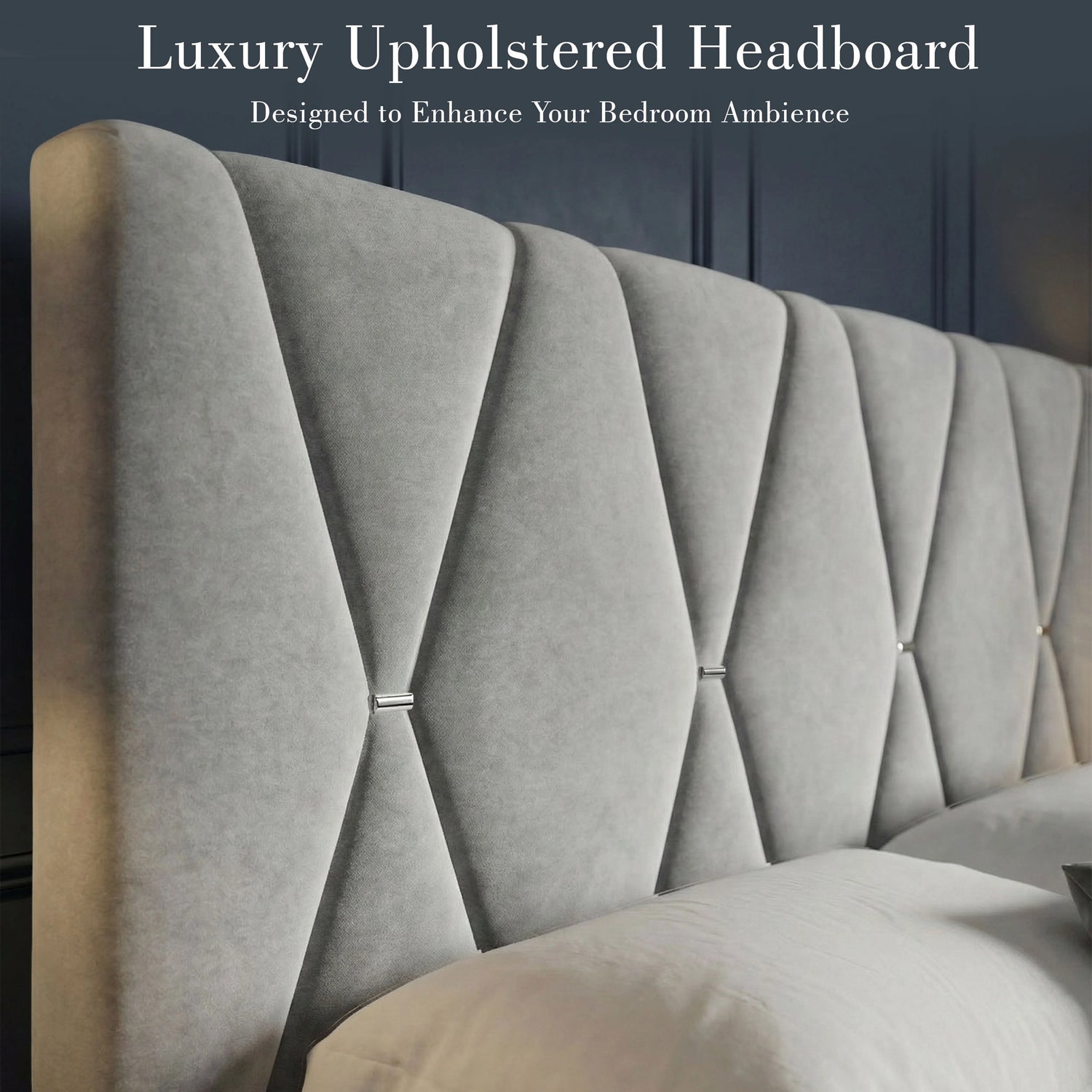 Premium Velvet Upholstery: This double bed frame comes beautifully upholstered in soft, luxurious velvet, adding a touch of luxury to your bedroom.