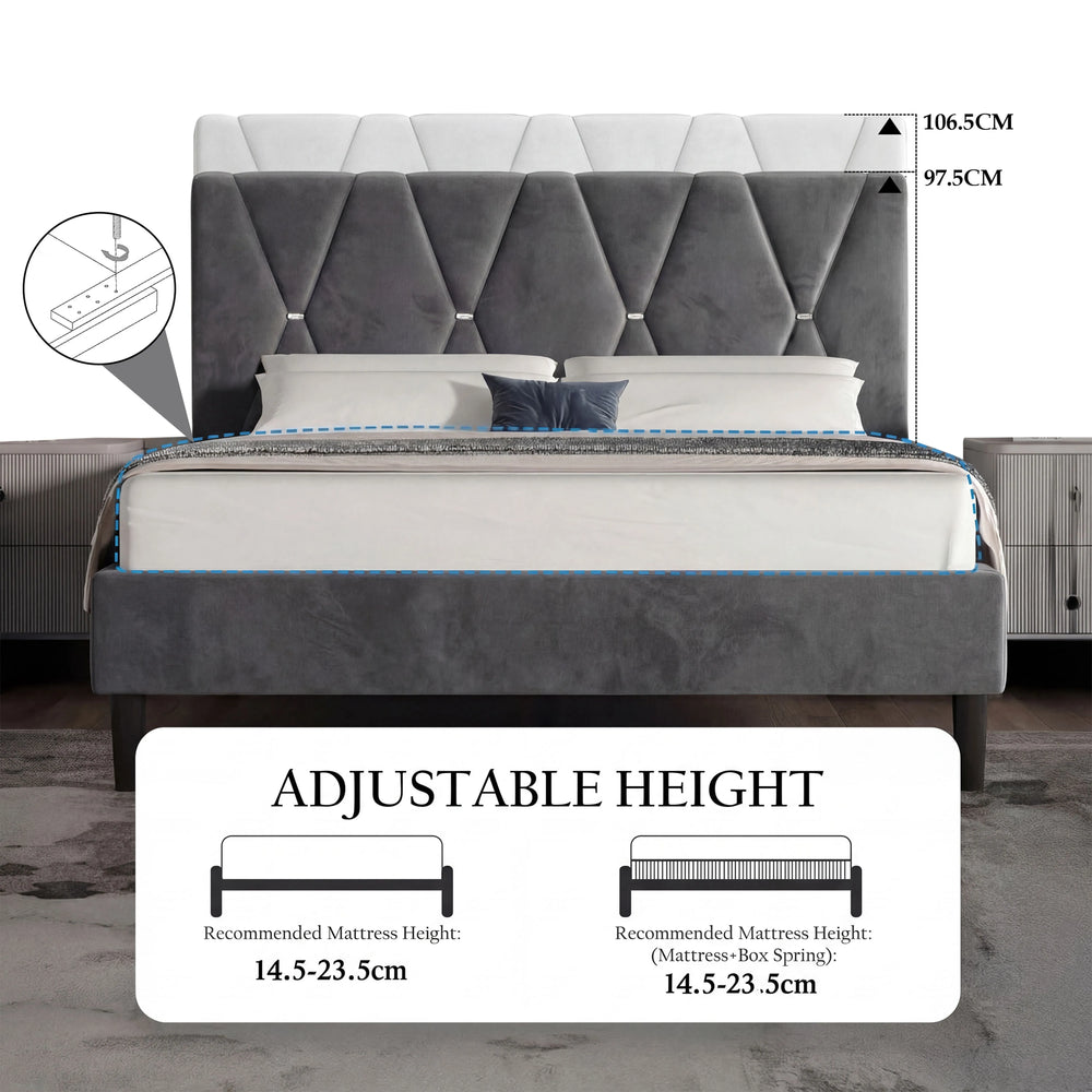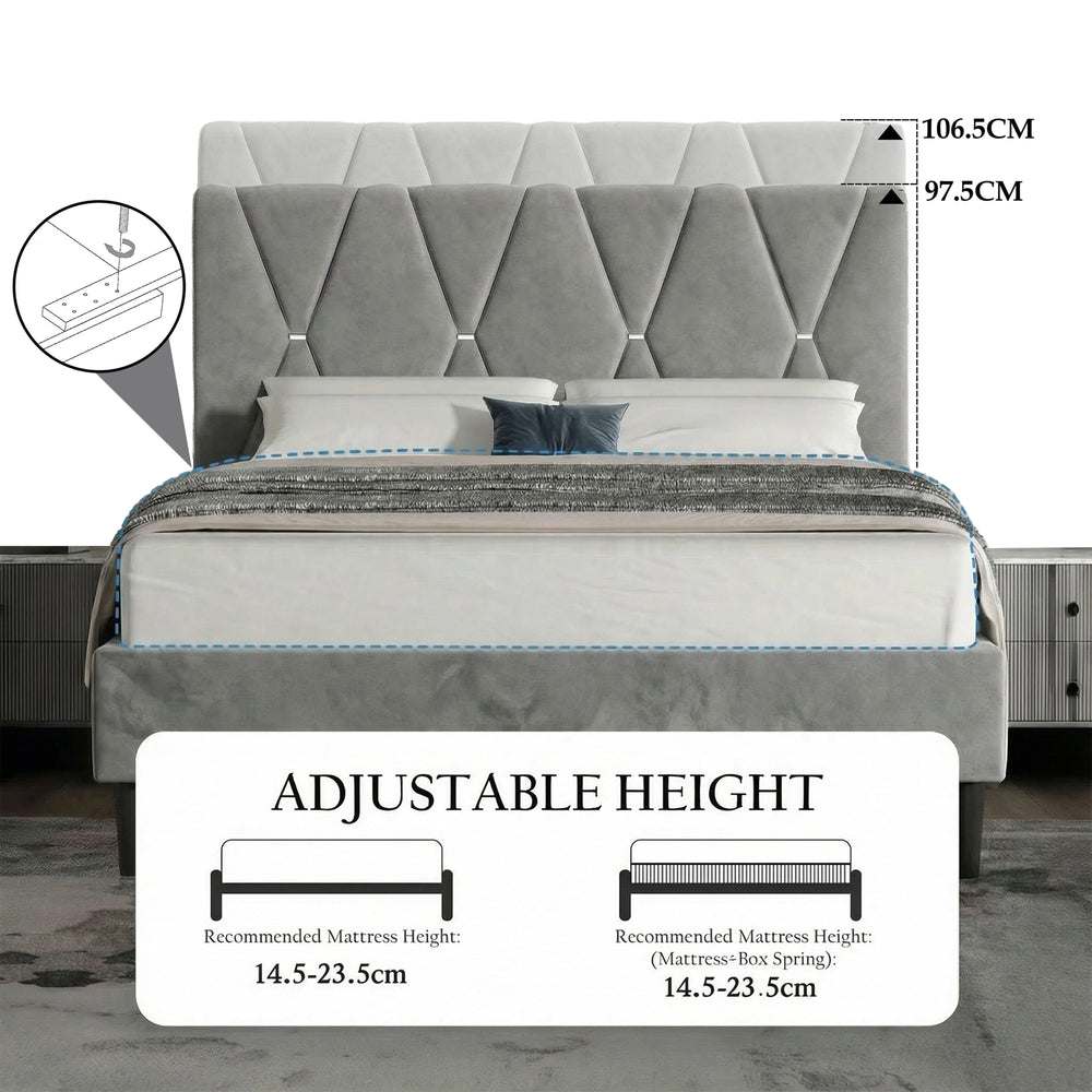 Easy To Assemble: Delivered flat-packed with a simple manual, you can just follow the steps to assemble this adjustable grey bed frame in under an hour.