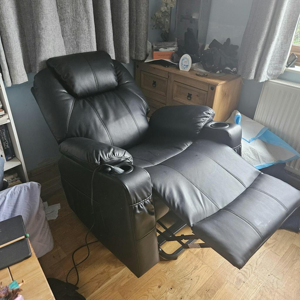 - The recliner armchair comes flat-packed; easy assembly, two people recommended.