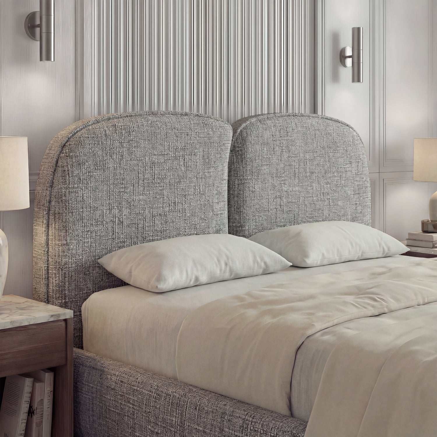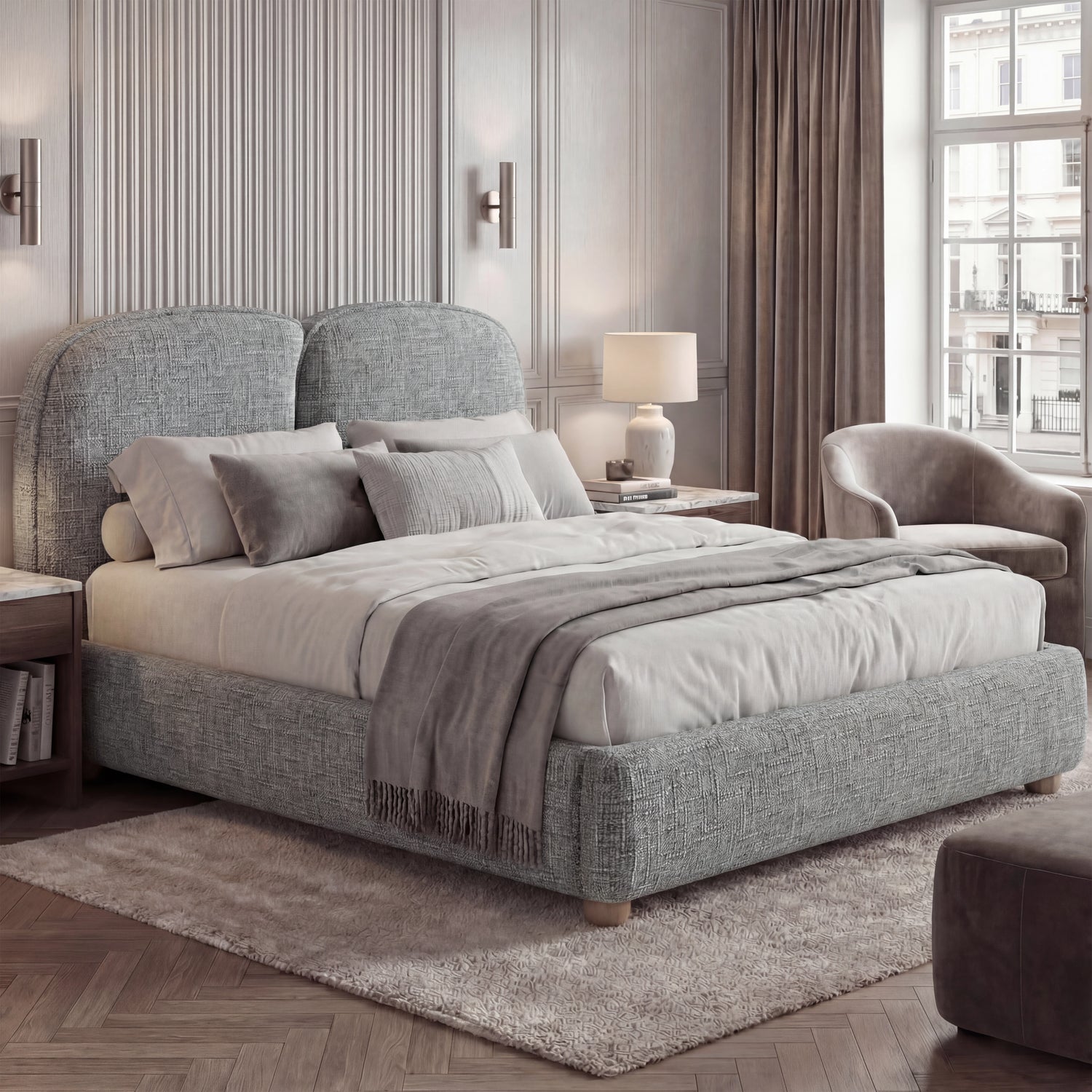 Unlike beds that look good but feel lightweight, the Embracea bed frame feels solid from day one and stays that way. With a split curved headboard and plush upholstery throughout, it stands out without feeling heavy. Underneath, a metal frame with central support and extra legs spreads weight evenly across the mattress. The slatted base improves airflow, while the low platform gives it a grounded, comfortable feel. With larger-than-standard double and king sizes and two colour options, this upholstered bed frame fits naturally into your bedroom.