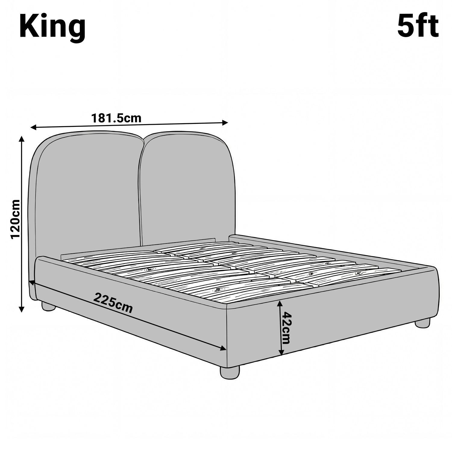 Size: Double (4ft6): (L): 217 cm, (W): 167 cm, (H): 120 cm, King (5ft): (L): 225 cm, (W): 181.5 cm, (H): 120 cm