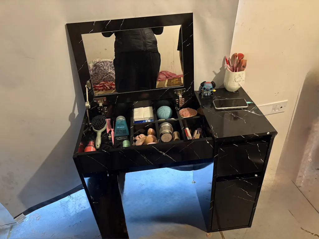 ![[Black] dressing table with mirror and storage featuring a flip-up top, side drawer, and matching stool, ideal for girls' bedrooms. Stylish makeup vanity desk from DHS.](http://dreamhomestore.co.uk/cdn/shop/files/054.webp?v=1771014474&width=1214)