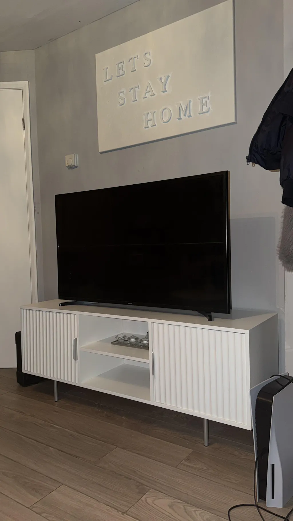 ![[White] Modern white TV stand with vertical fluted doors, open shelving, and silver legs for a minimalist living room.](http://dreamhomestore.co.uk/cdn/shop/files/tv-stand-white.webp?v=1775115074&width=1214)