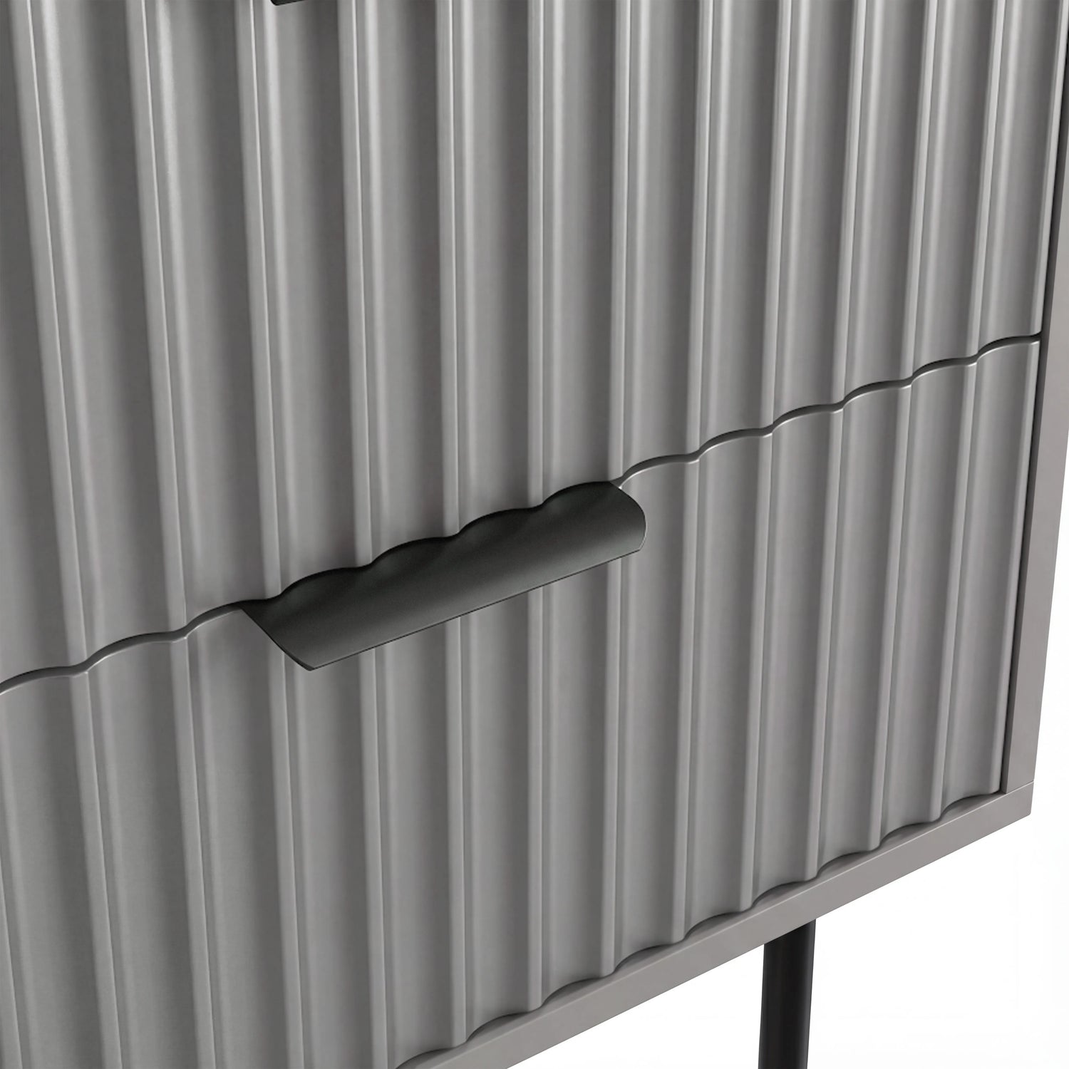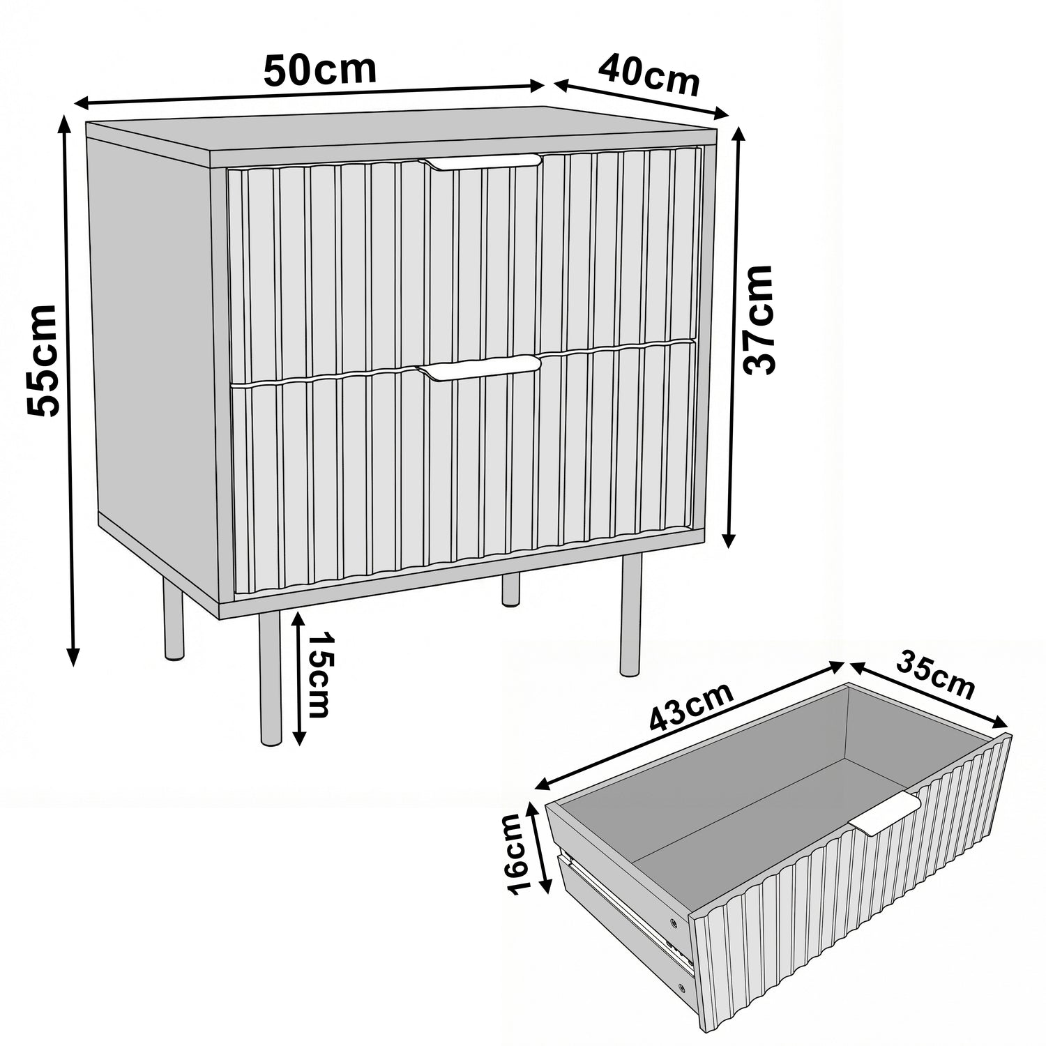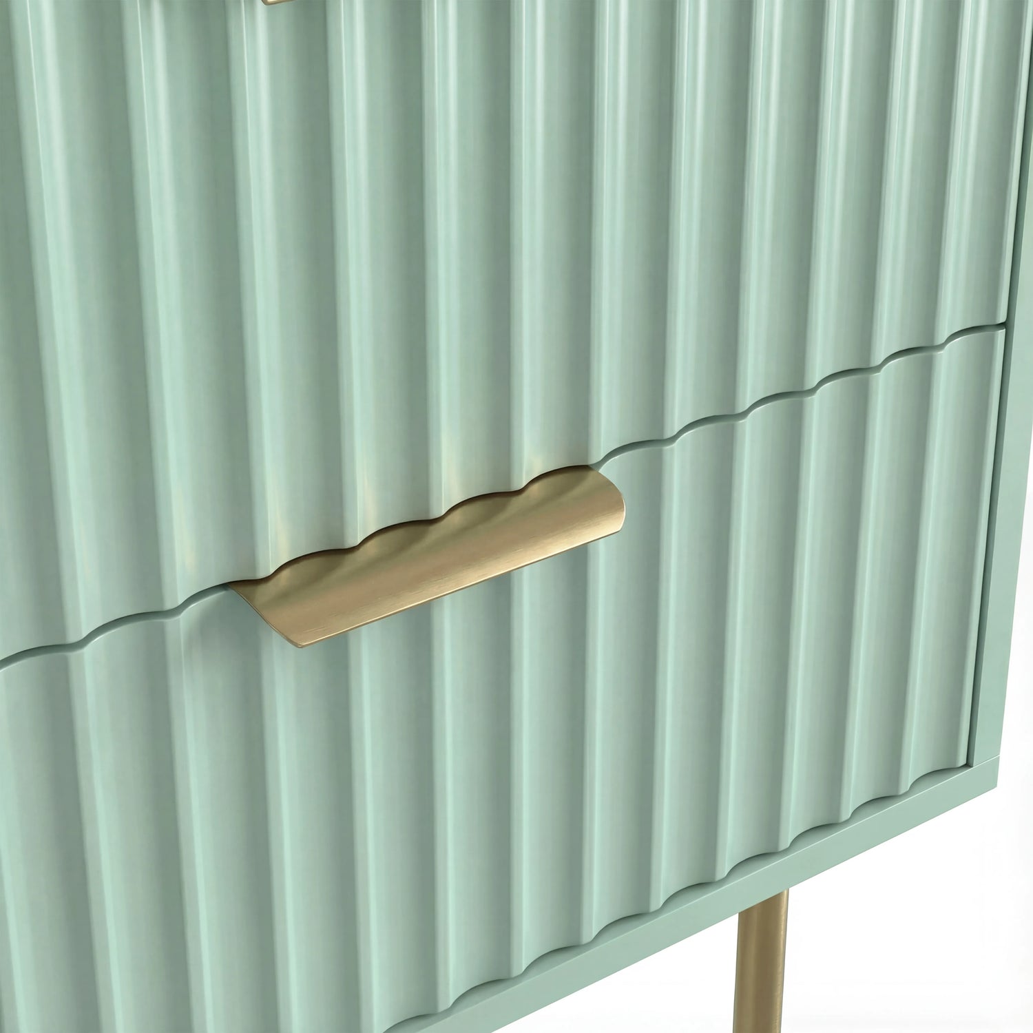 Designed to fit your lifestyle, this 2 drawer bedside table comes with a distinctive flute design. It features two spacious drawers and a generous tabletop, which helps you keep your essentials within easy reach. Crafted from quality engineered wood with premium hardware and a painted finish, this small bedside table is durable enough for everyday use. Available as a grey, sage green, black or white bedside table, you can make your bedside more practical.