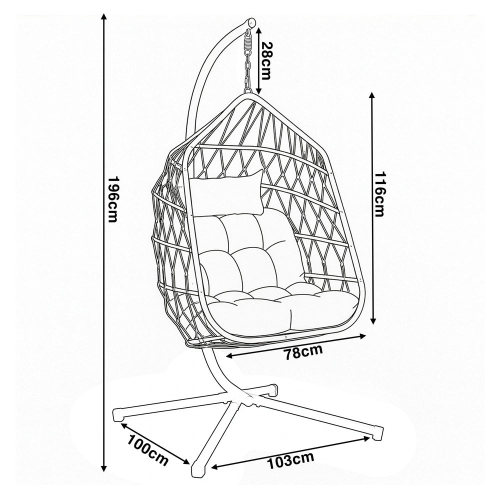 Stylish Mesh Rope Basket: With 116 cm × 78 cm × 59 cm (L x W x D) dimensions, this folding egg chair provides plenty of room to sit back and relax.