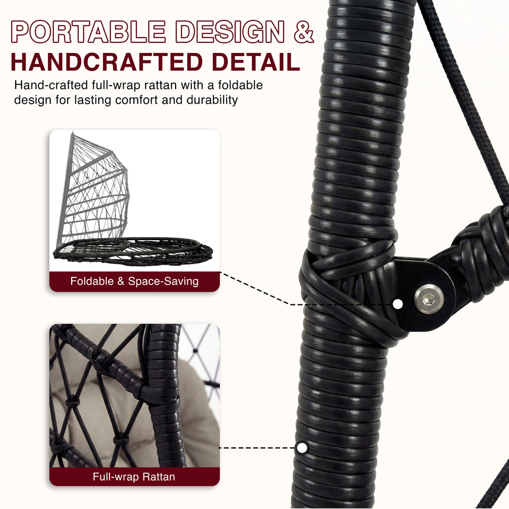 Practical Foldable Basket: This outdoor egg chair features a foldable basket for easy storage after use, keeping your patios or rooms clutter-free.