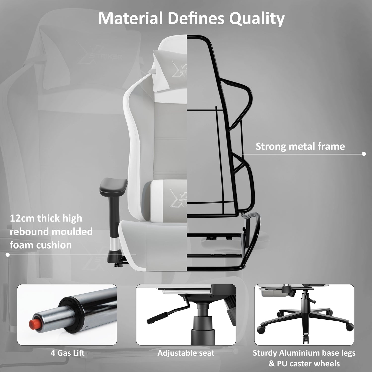 Heavy-Duty Frame: This Xstriker computer gaming chair is built with a strong metal frame and base to endure daily battles and marathon gaming sessions.