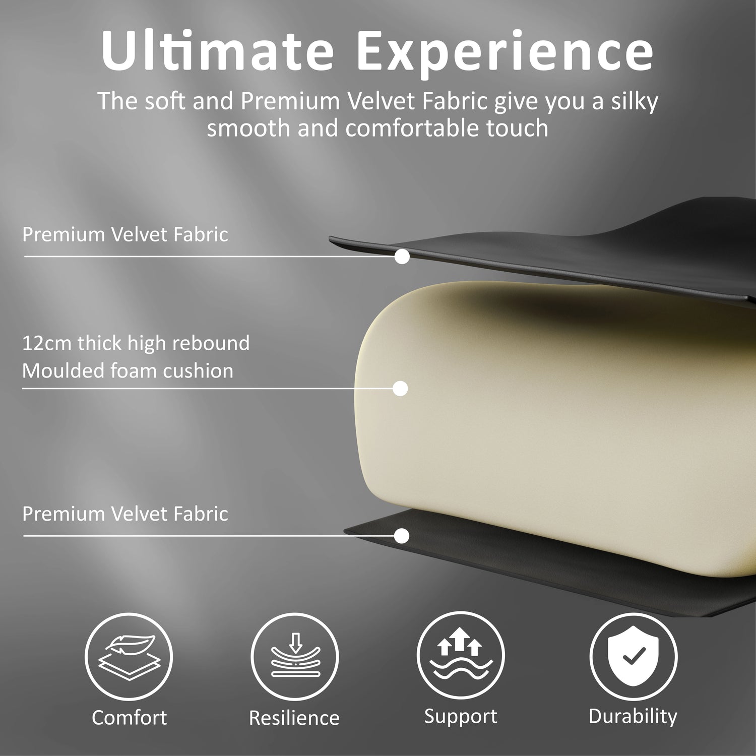 Premium Velvet Finish: Wrapped in soft and durable velvet fabric, this velvet gaming chair offers a luxurious feel while ensuring long-lasting comfort.
