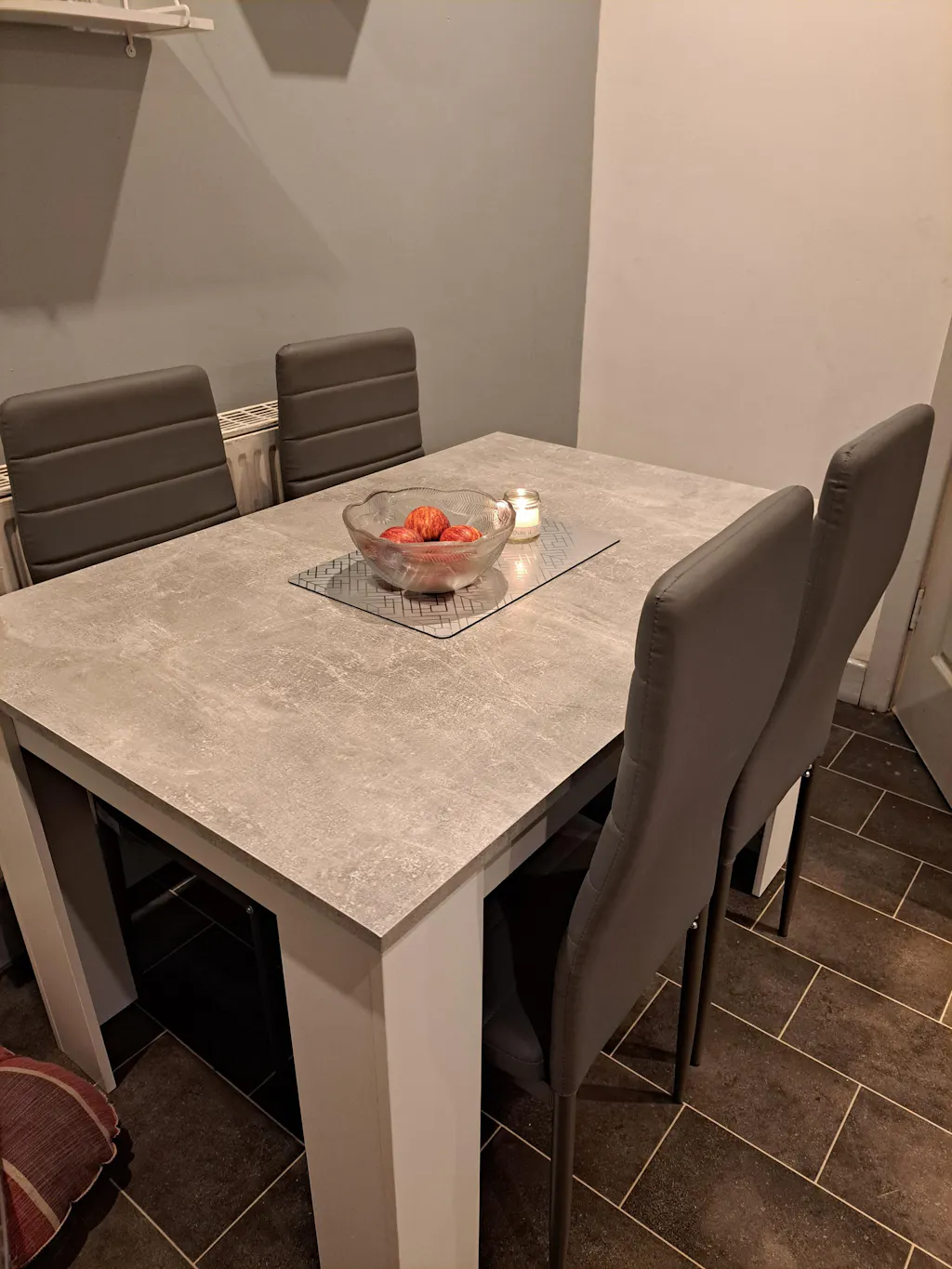 ![[4 Seater | Black] Grey Marble Finish Dining Table with 4 black chairs in a cozy dining room. Ideal for small family dining or entertaining guests.](http://dreamhomestore.co.uk/cdn/shop/files/grey-marble-dining-table-set-with-4-black-chairs-4.webp?v=1771008236&width=1214)