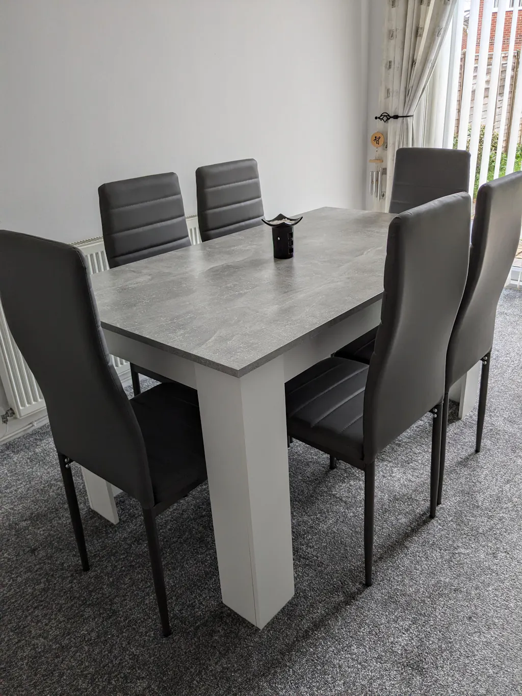 ![[6 Seater | Grey] Top view of Grey Marble Finish Dining Table Set with 6 grey chairs, set for dining. Ideal for modern family dining rooms.](http://dreamhomestore.co.uk/cdn/shop/files/grey-marble-dining-table-set-with-6-grey-chairs-2.webp?v=1771008148&width=1214)
