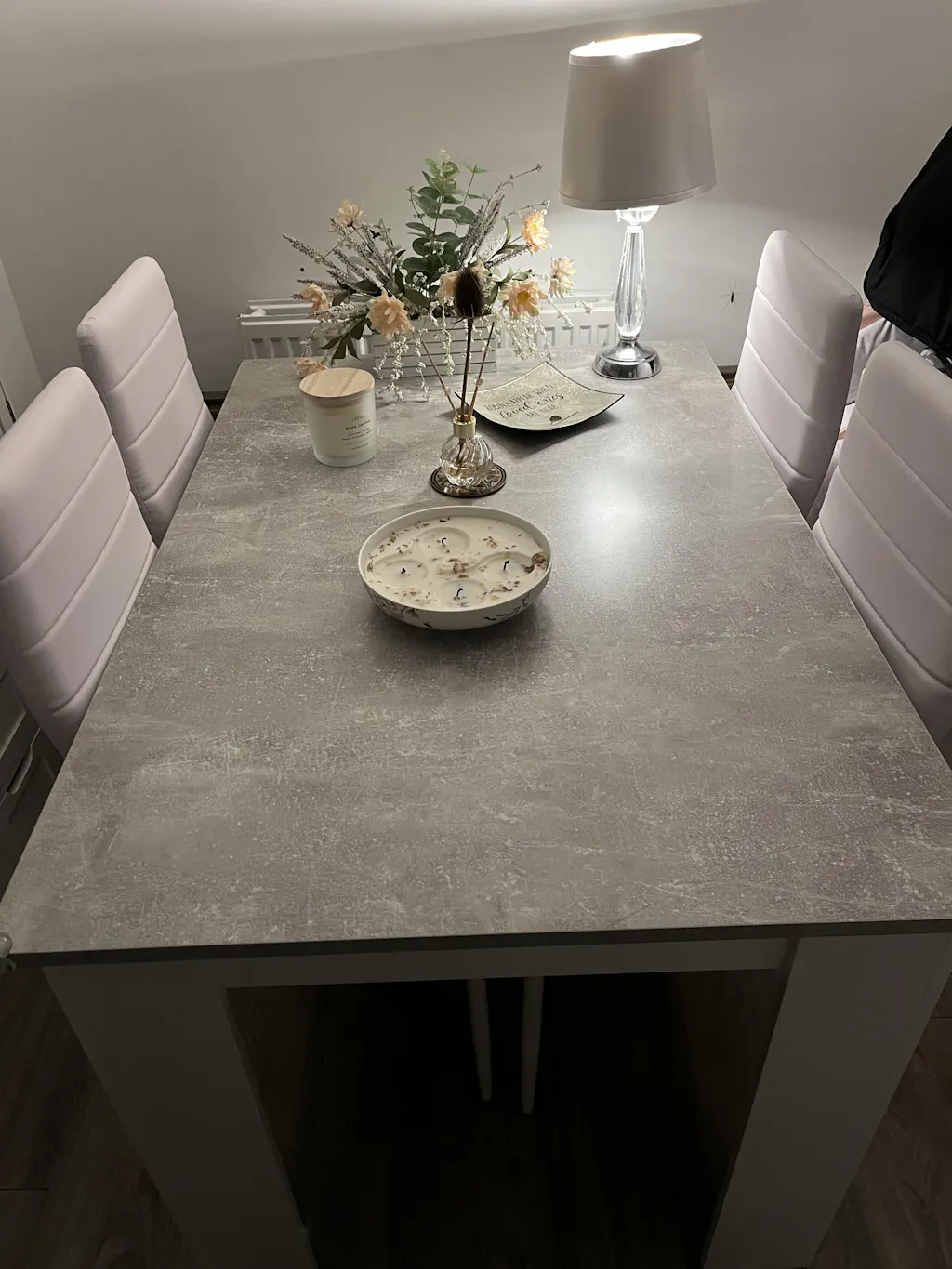 ![[6 Seater | Grey] Rectangular Grey Marble Finish Dining Table with white legs, part of the 4-6 seater kitchen and dining furniture set from DHS.](http://dreamhomestore.co.uk/cdn/shop/files/grey-marble-dining-table-10.webp?v=1771008116&width=1214)