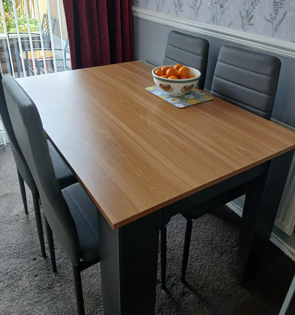![[4 Seater | Black] modern small dining table with black upholstered chairs by dream home store for inviting dining rooms](http://dreamhomestore.co.uk/cdn/shop/files/grey-pine-dining-table-with-4-black-chairs.webp?v=1766126452&width=1214)
