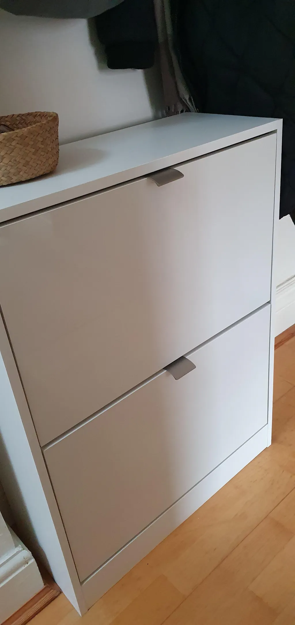 - The narrow shoe cabinet comes in four stylish colours, like the white gloss shoe cabinet.