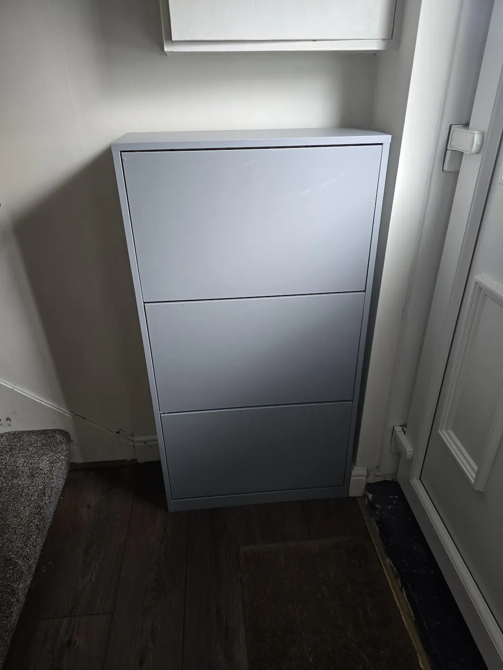 ![[Silver Grey] Front-facing thin shoe cabinet with the lowest drawer open, displaying multiple pairs of shoes.](http://dreamhomestore.co.uk/cdn/shop/files/small-grey-shoe-storage-unit.webp?v=1771009240&width=1214)