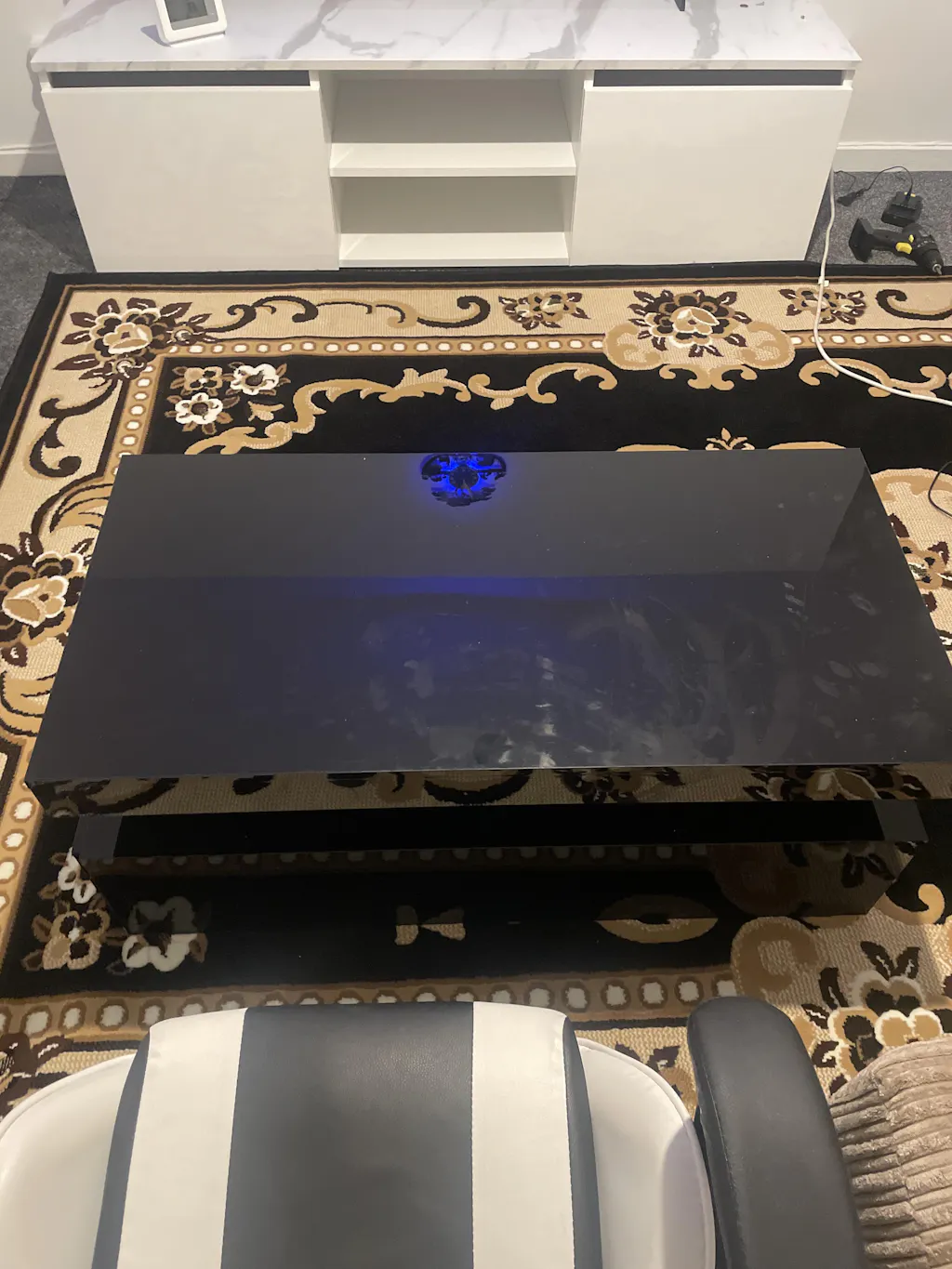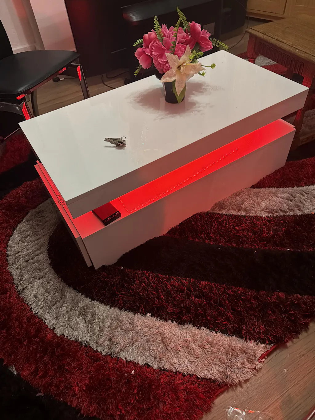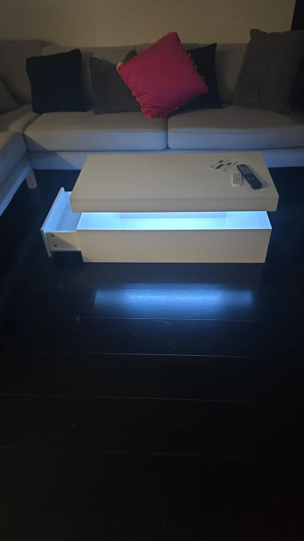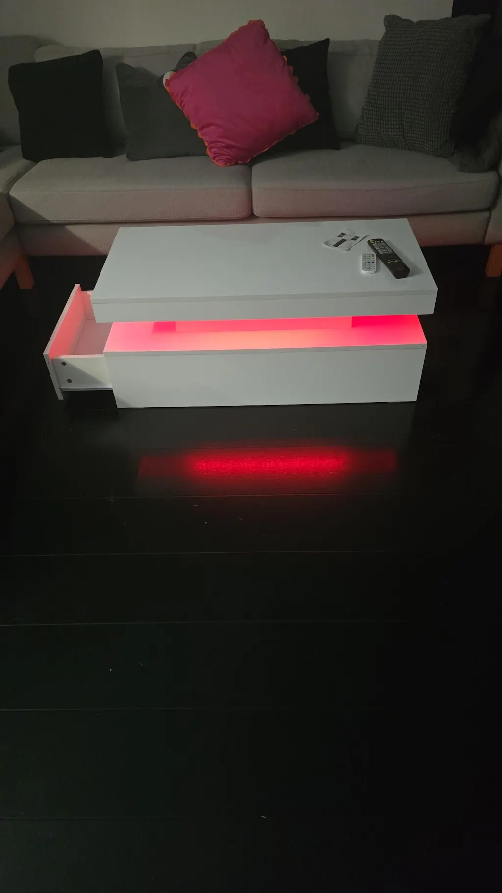 Why you’ll love our high-gloss coffee table with storage and LED lights.