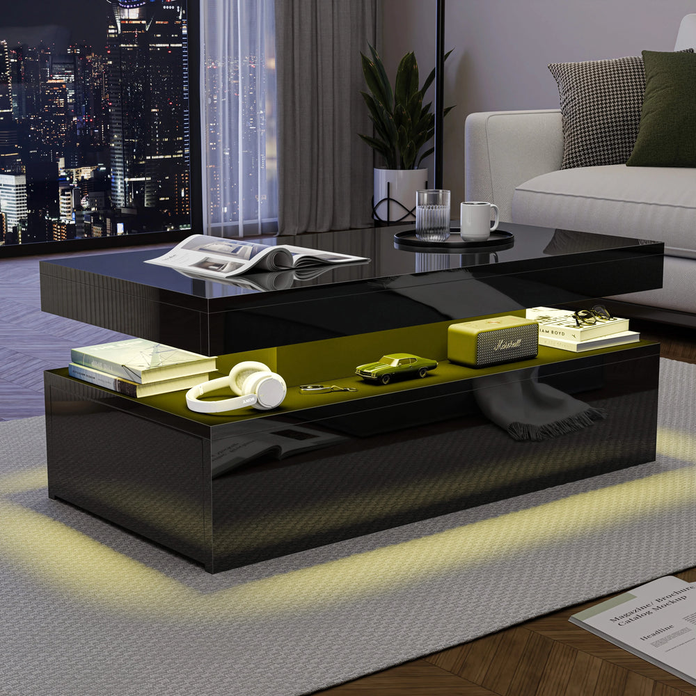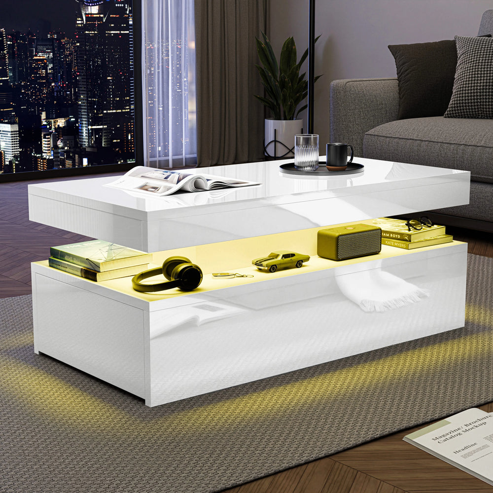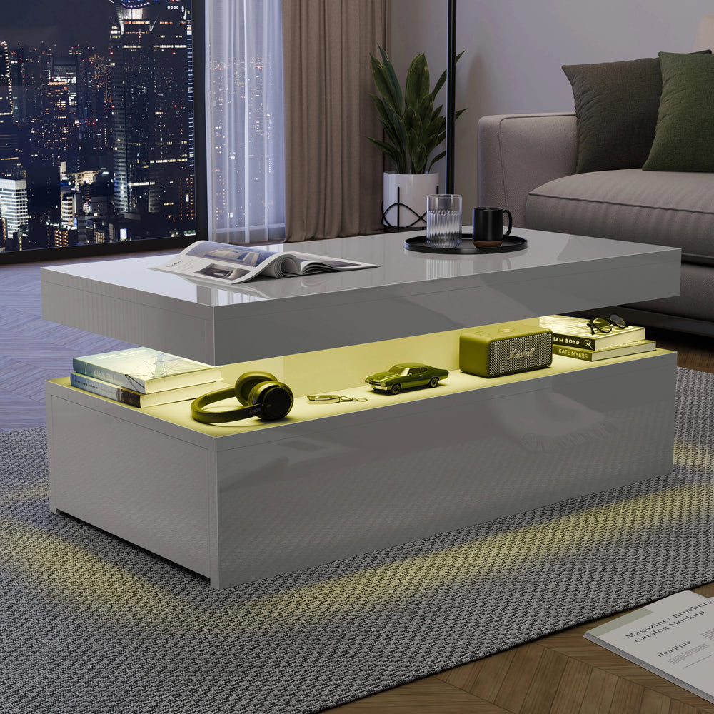 Why you’ll love our high-gloss coffee table with storage and LED lights.