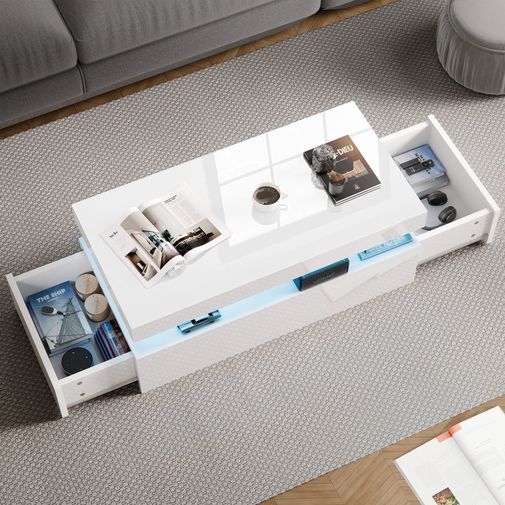 High Gloss Storage Coffee Table With Drawers & LED Lights