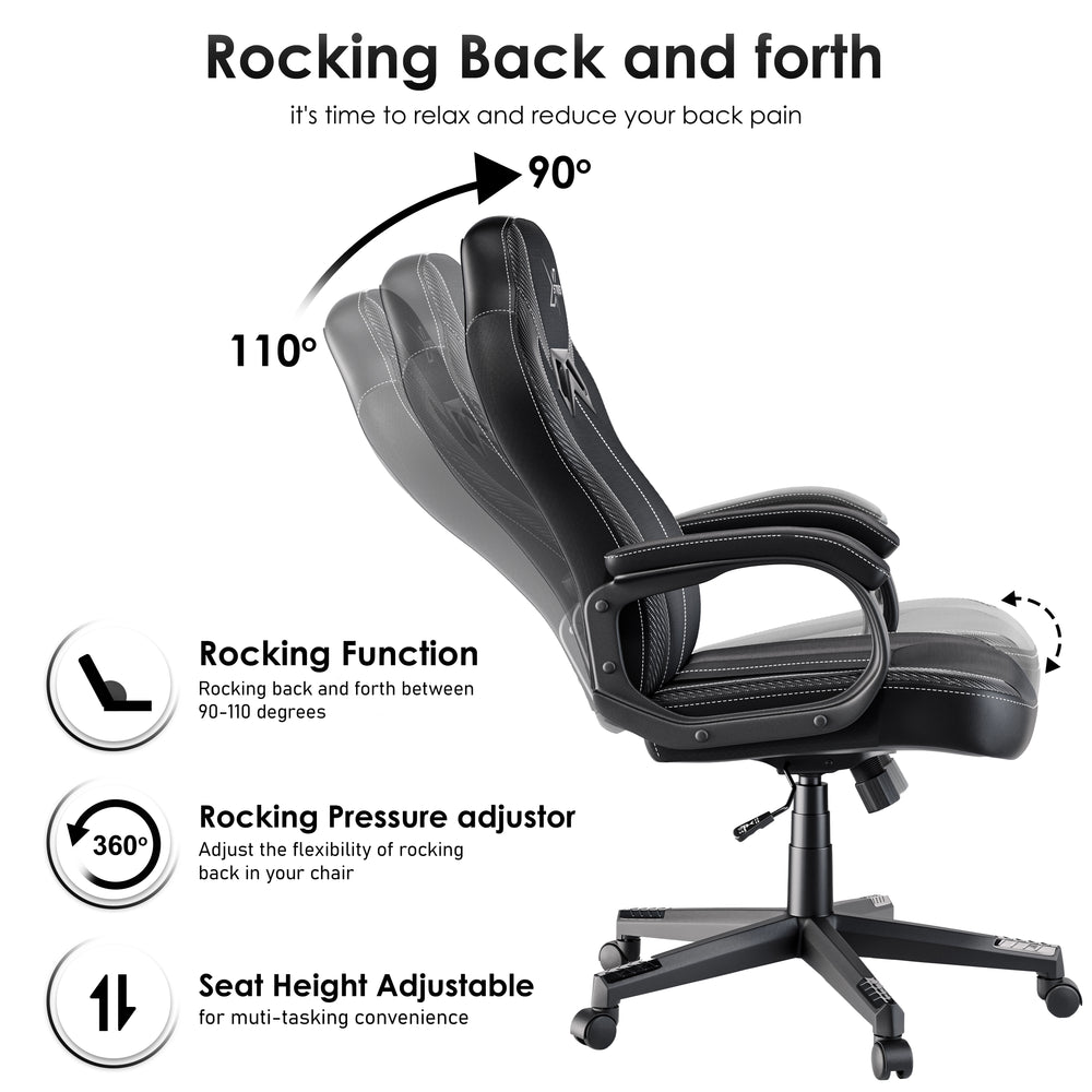 Relaxing Rock And Tilt Function: Equipped with a butterfly tilt system, this PC gaming chair rocks gently to help relieve stiffness and reduce fatigue.