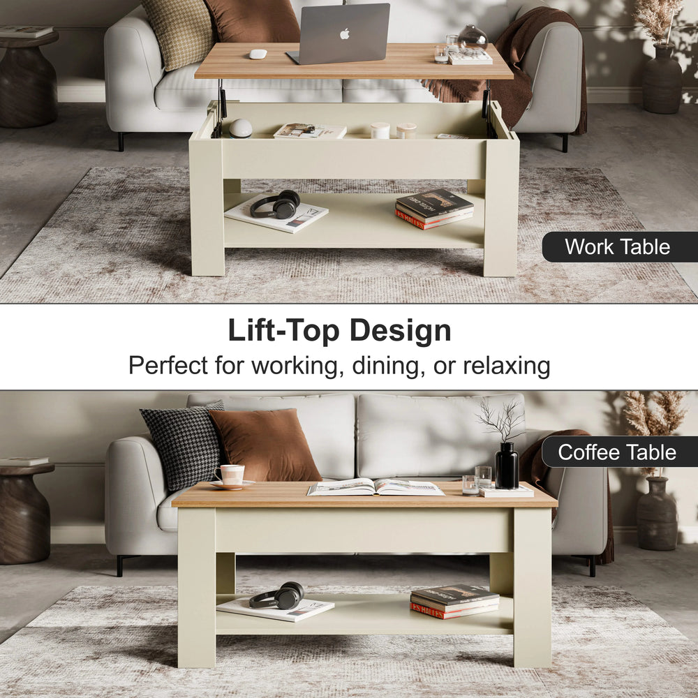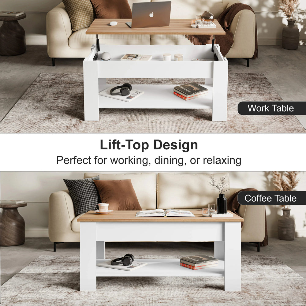 - Lift-Up Coffee Table: Thanks to the lift-up mechanism, you can adjust the height of the tabletop on this coffee table with storage to suit your needs.