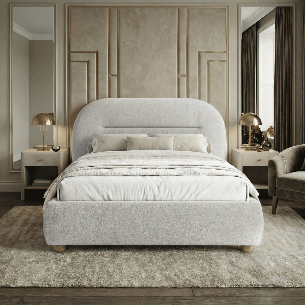 Plush Statement Headboard: This bed frame features a curved, padded headboard that supports you while adding a striking focal point in your room.