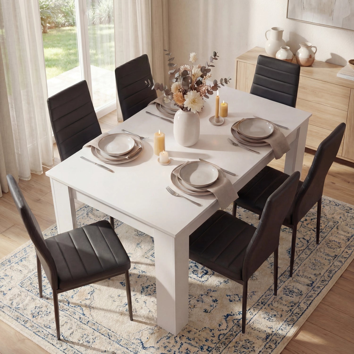 Straightforward Assembly: Shipped flat-packed with clear instructions, this dining table set can be assembled in under an hour with a little assistance.