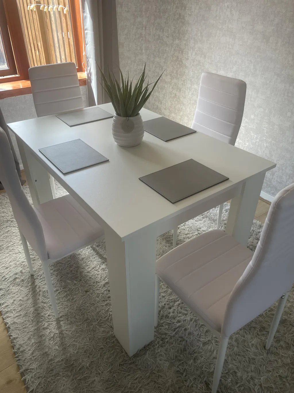 ![[4 Seater | White] Modern 4 seater white dining table set with white PU leather chairs in a bright kitchen, ideal for small dining spaces.](http://dreamhomestore.co.uk/cdn/shop/files/2_5eac1baf-26f9-4e94-89bc-1286a9ce5d20.webp?v=1768909328&width=1214)