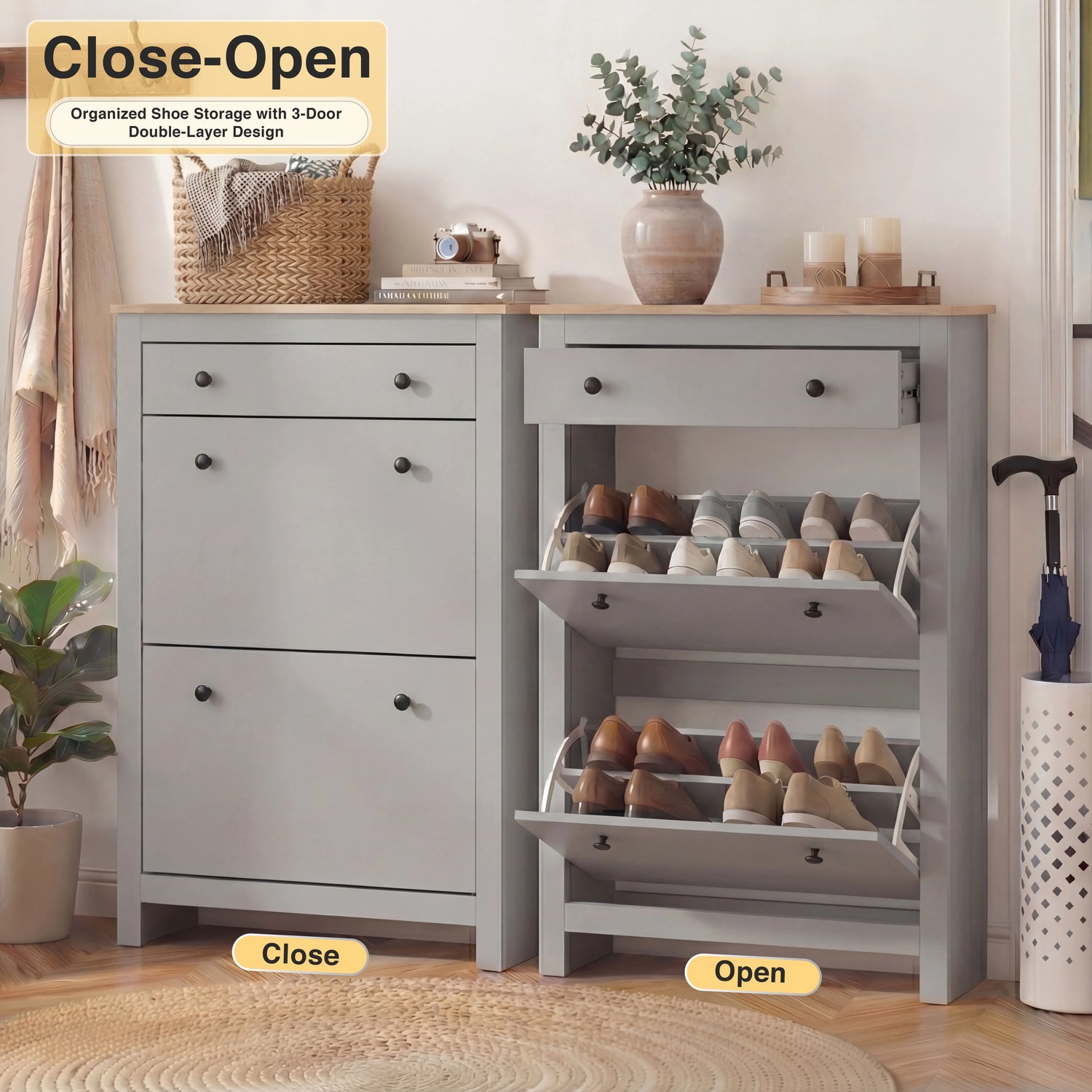 Modern Shoe Cabinet With Drawers | 2 Door Shoe Storage - White is backordered and will ship as soon as it is back in stock.