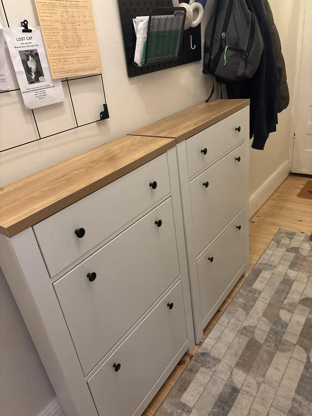 Hallway shoe storage comes in three colours, like the black shoe cabinet.