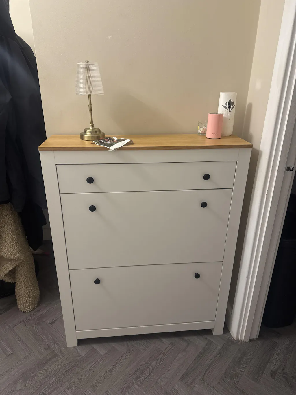 ![[White] All compartments open showing top drawer with everyday accessories and both flip-down doors filled with shoes](http://dreamhomestore.co.uk/cdn/shop/files/2-door-shoe-cabinet-white-all-compartments-open.webp?v=1774614049&width=1214)