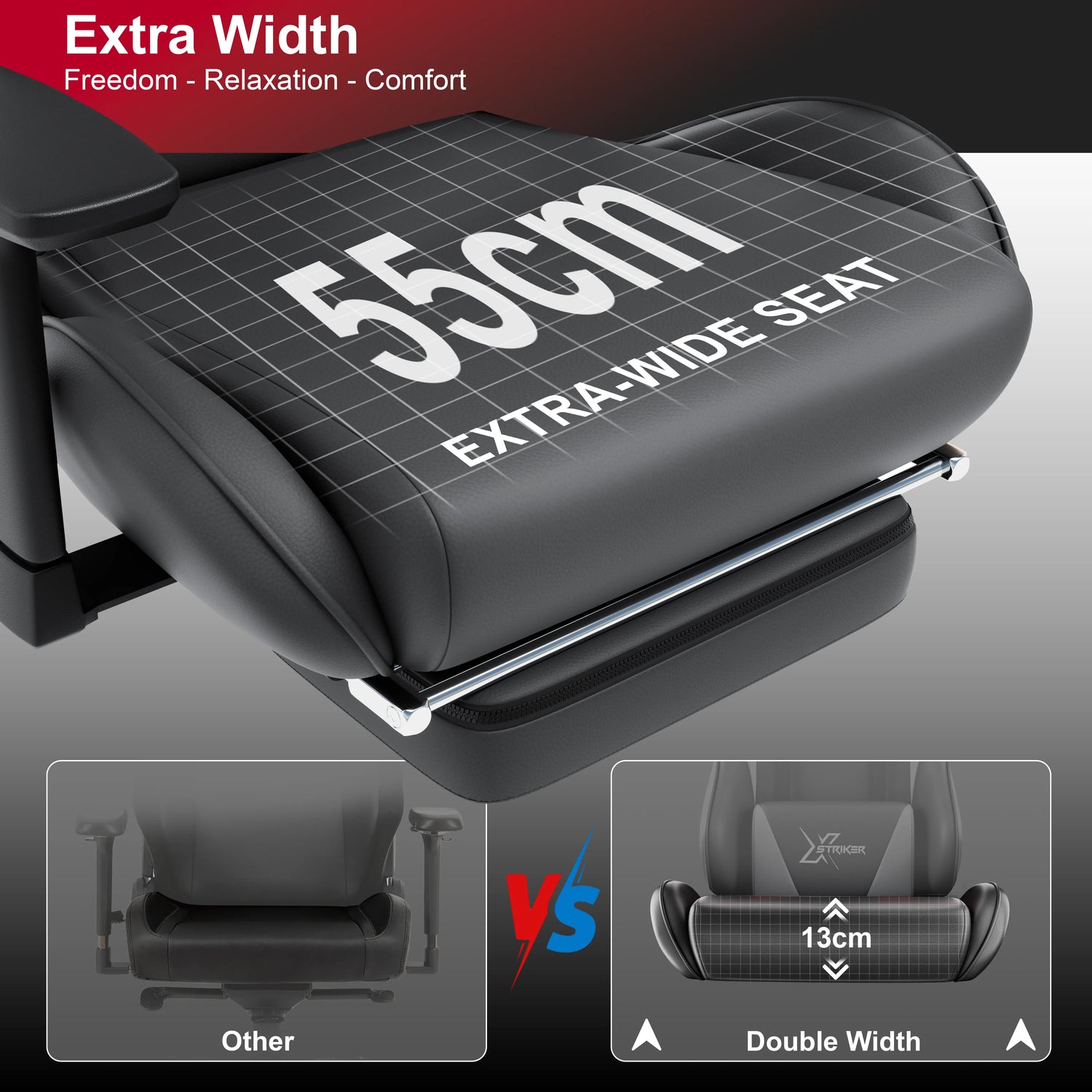 Widest 55 cm Seat Design: The PC gaming chair has a wider seat, providing you with more room to move and sit naturally without feeling restricted.